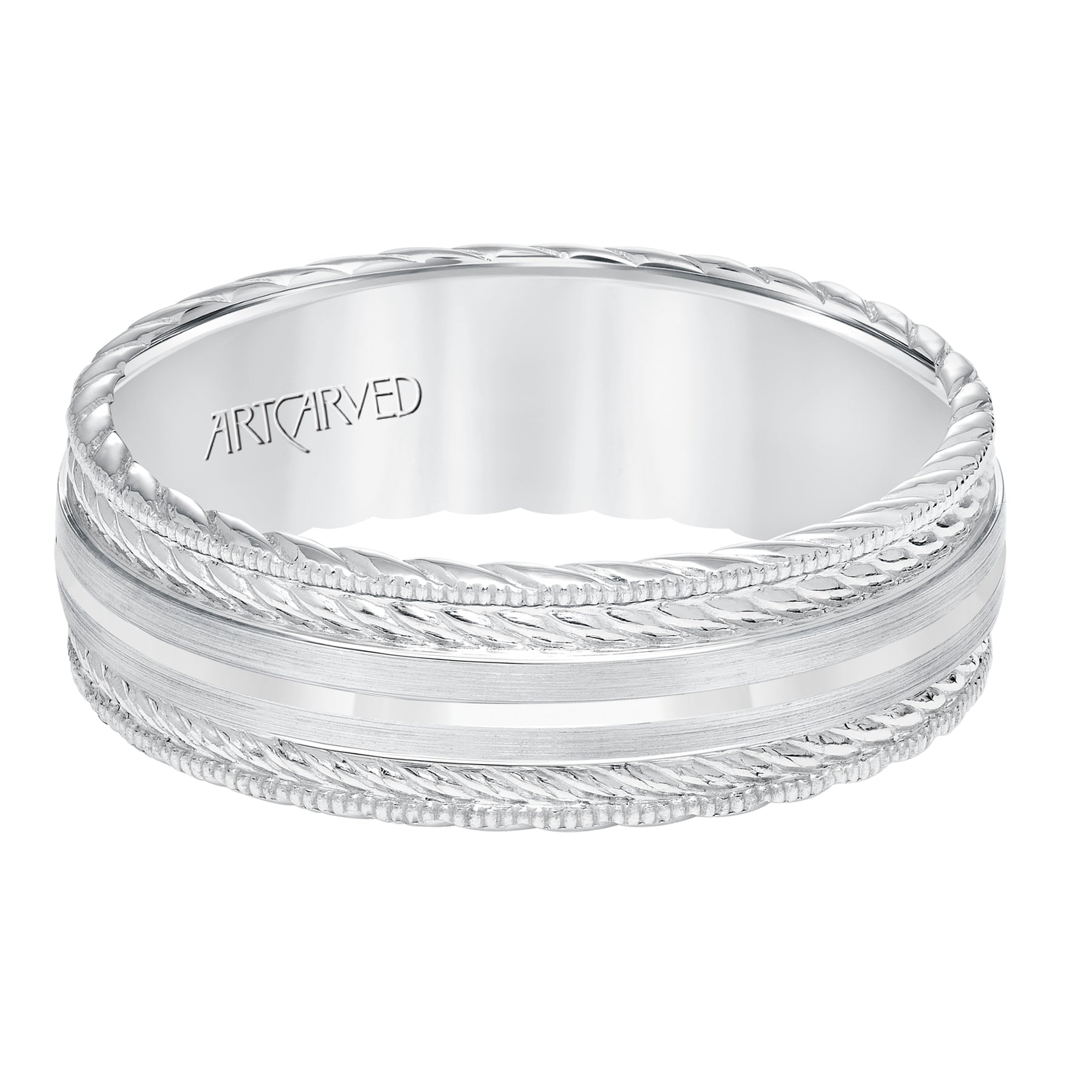 11-WV8641W7-G.00 - ARTCARVED - Mens wedding band with satin finish and milgrain edge, rope treatment on top and the sides with flat profile.