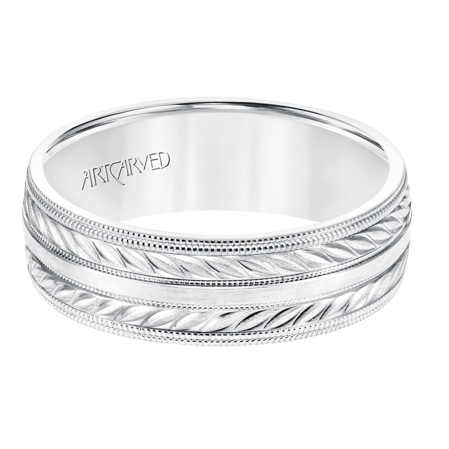 7MM Comfort Fit Wedding Band with a Wheat Motif and Milgrain Accent with Milgrain Edges