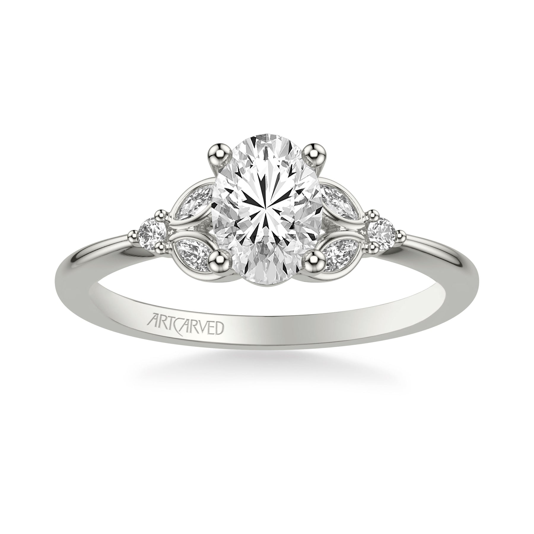 Floral Engagement Ring with Bezel Set Marquise Diamond Petal Accents and Polished Shank