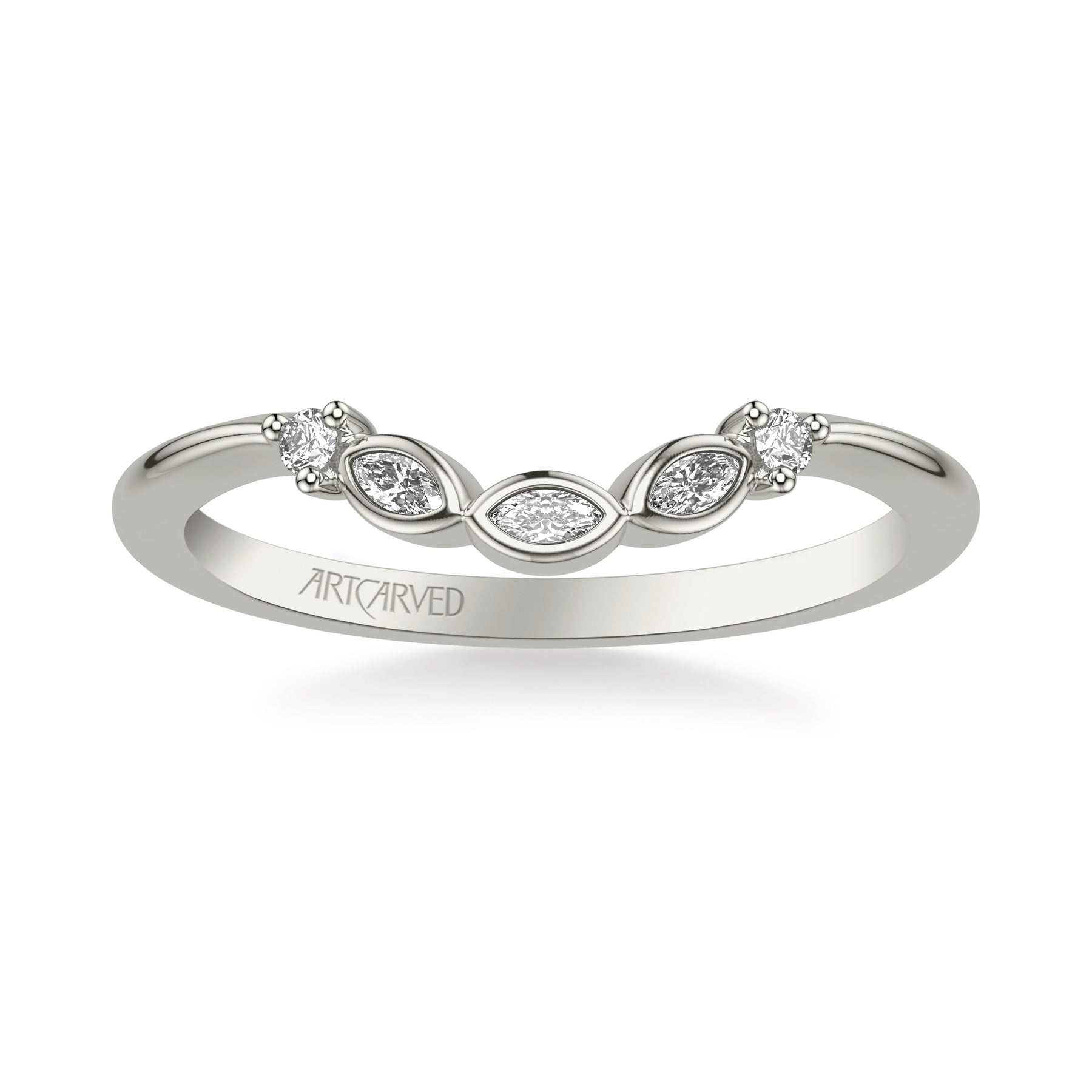 Floral Curved Wedding Band with Bezel Set Marquise Diamond Petal Accents