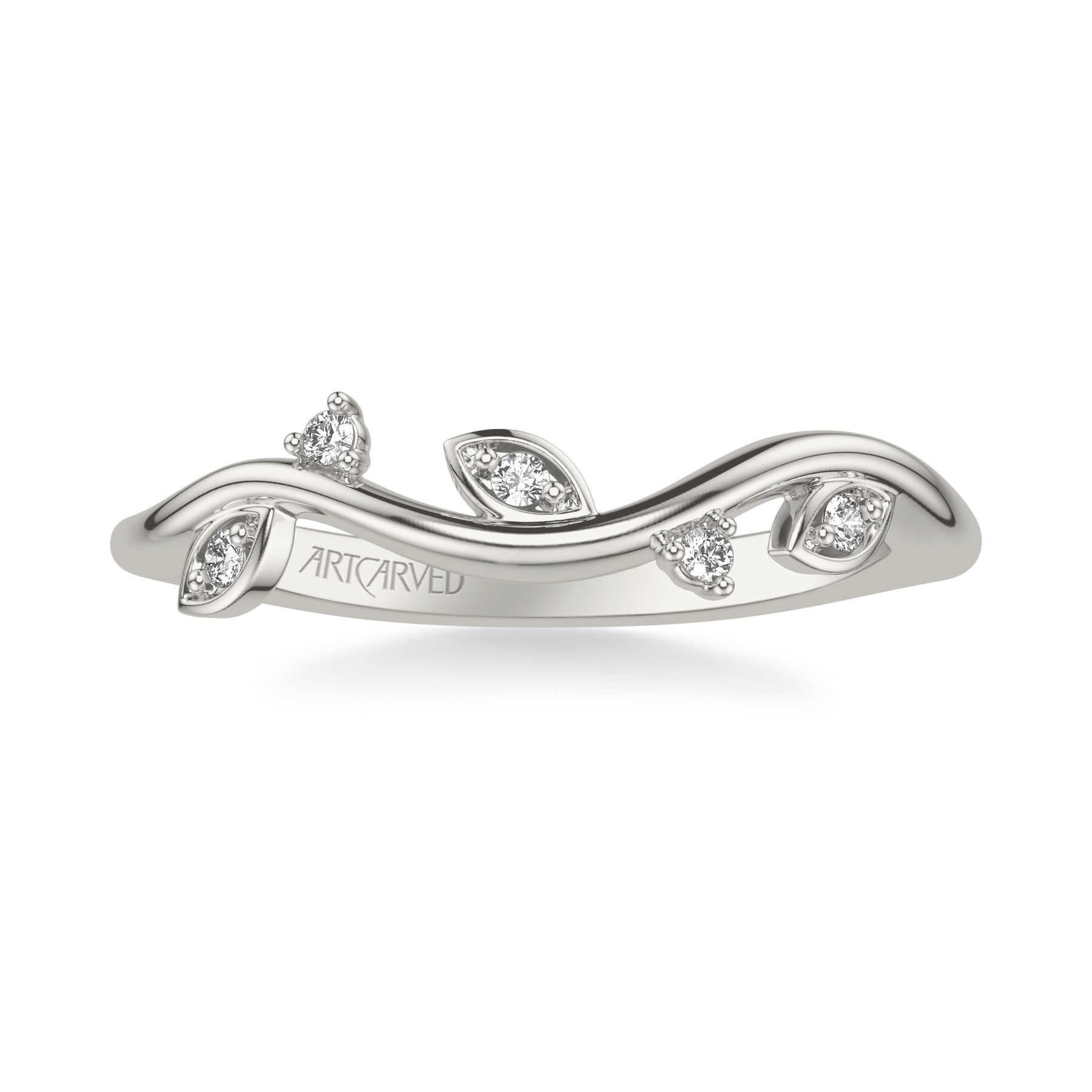 Floral Curved Wedding Band with Diamond Petal Accents and Floating Diamonds