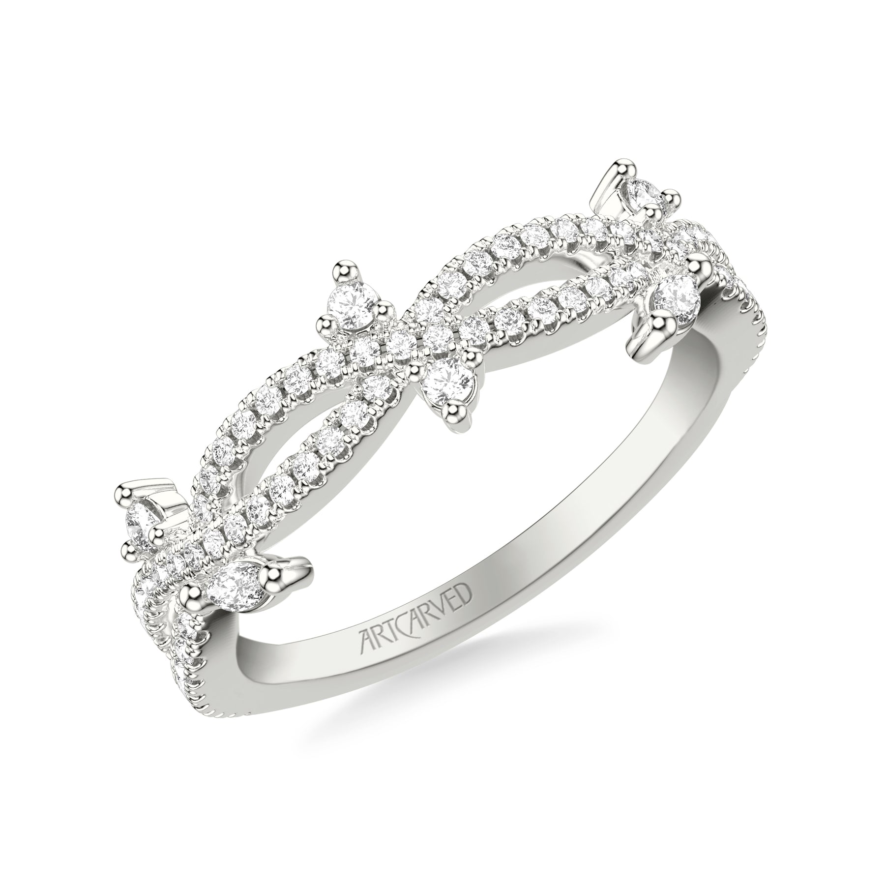 31-V1074W-L.00 - ARTCARVED - Floral Twist Wedding Band with Diamond Floating Prong Set Marquise and Round Diamond Accents