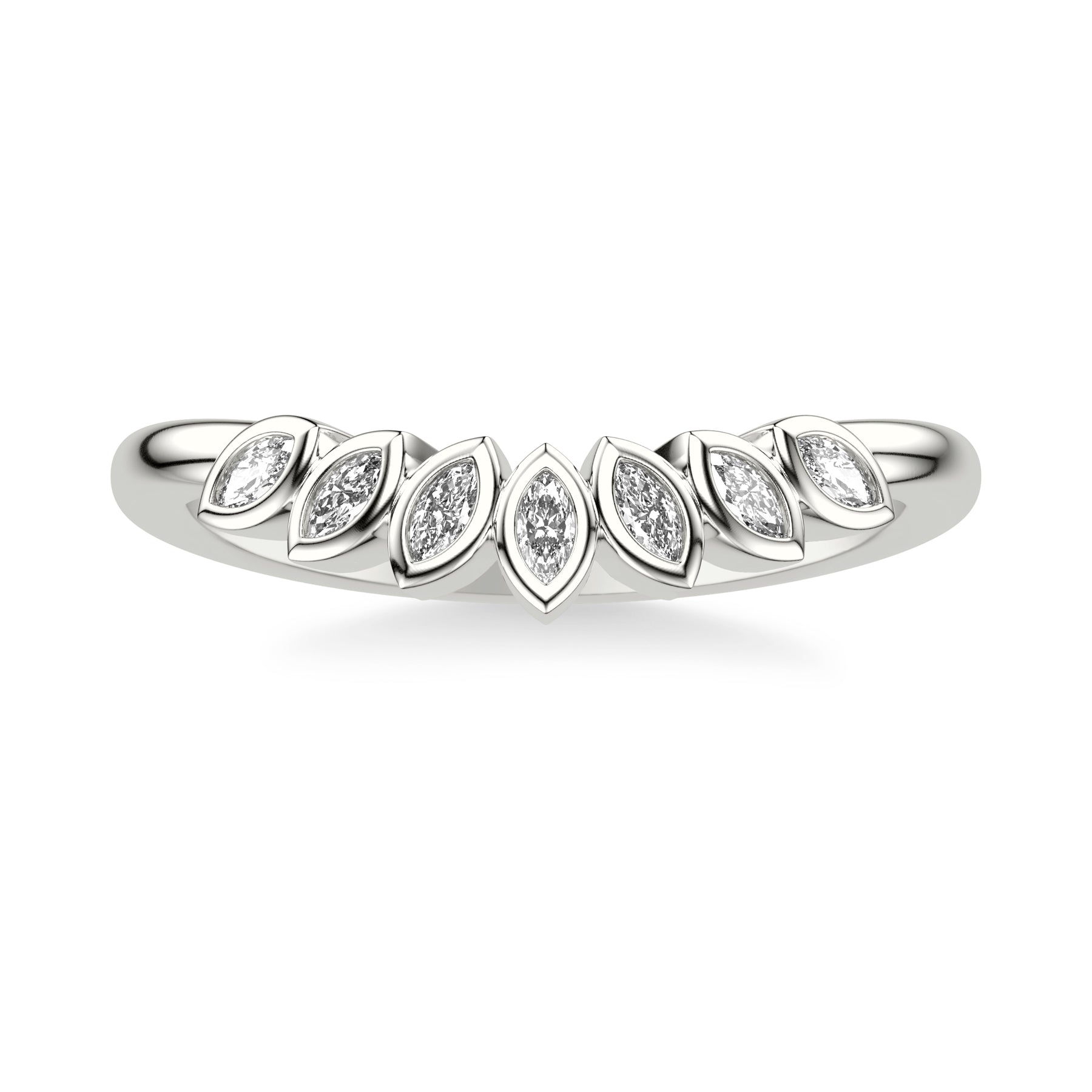 Floral Curved Wedding Band with Bezel Set Marquise Diamonds