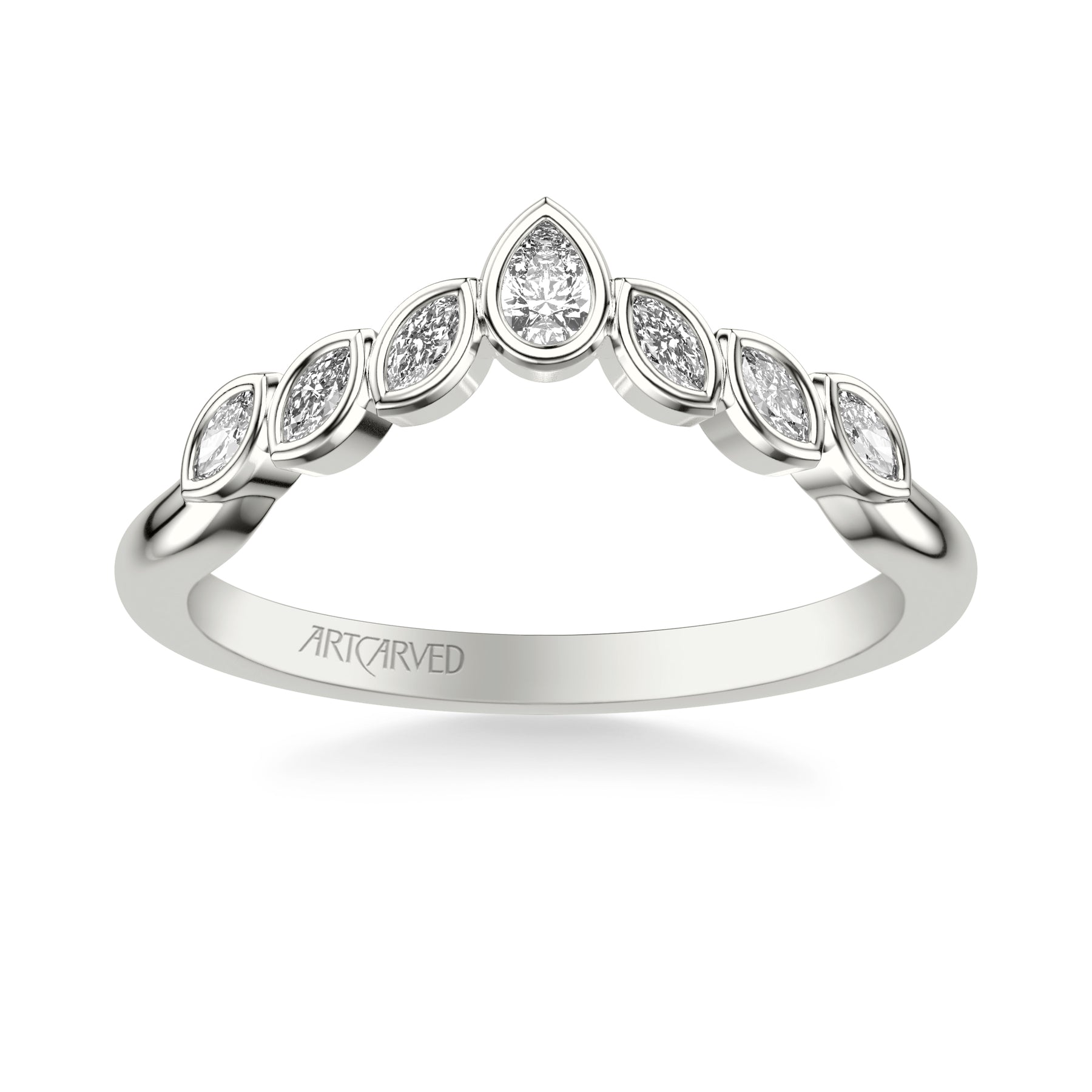 Floral Curved Wedding Band with Bezel Set Marquise and Pear Diamonds