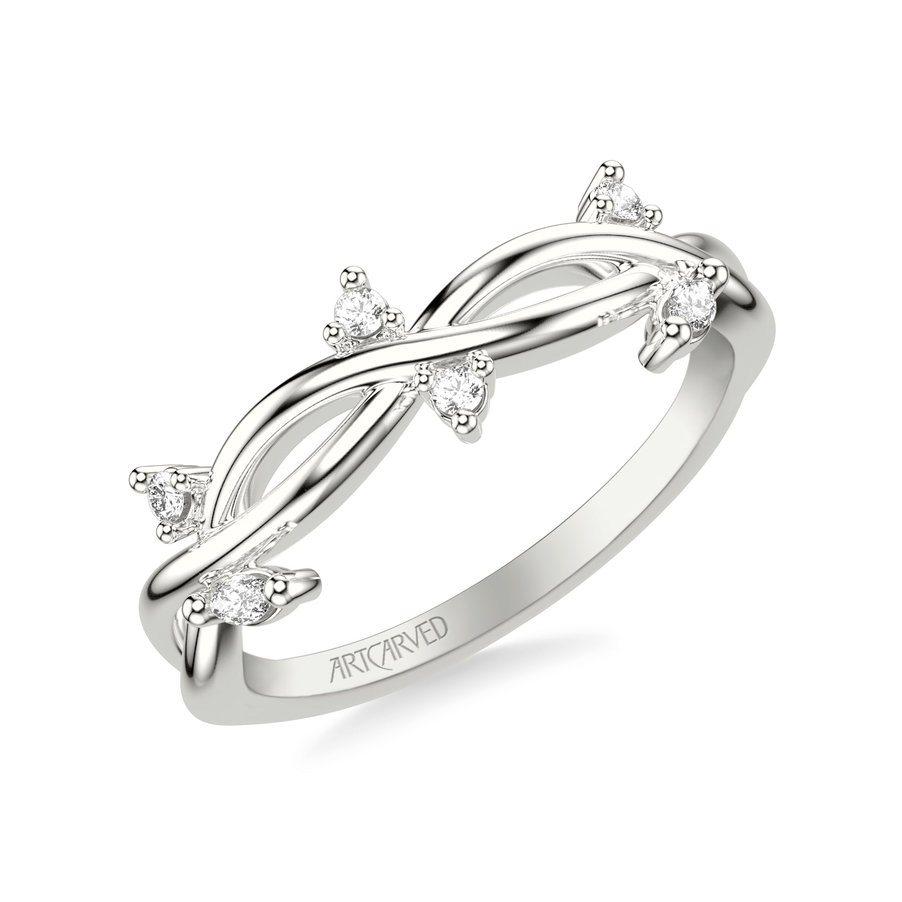 31-V1082W-L.00 - ARTCARVED - Floral Wedding Band with Floating Prong Set Marquise and Round Diamond Accents and Twisted Polished Shank