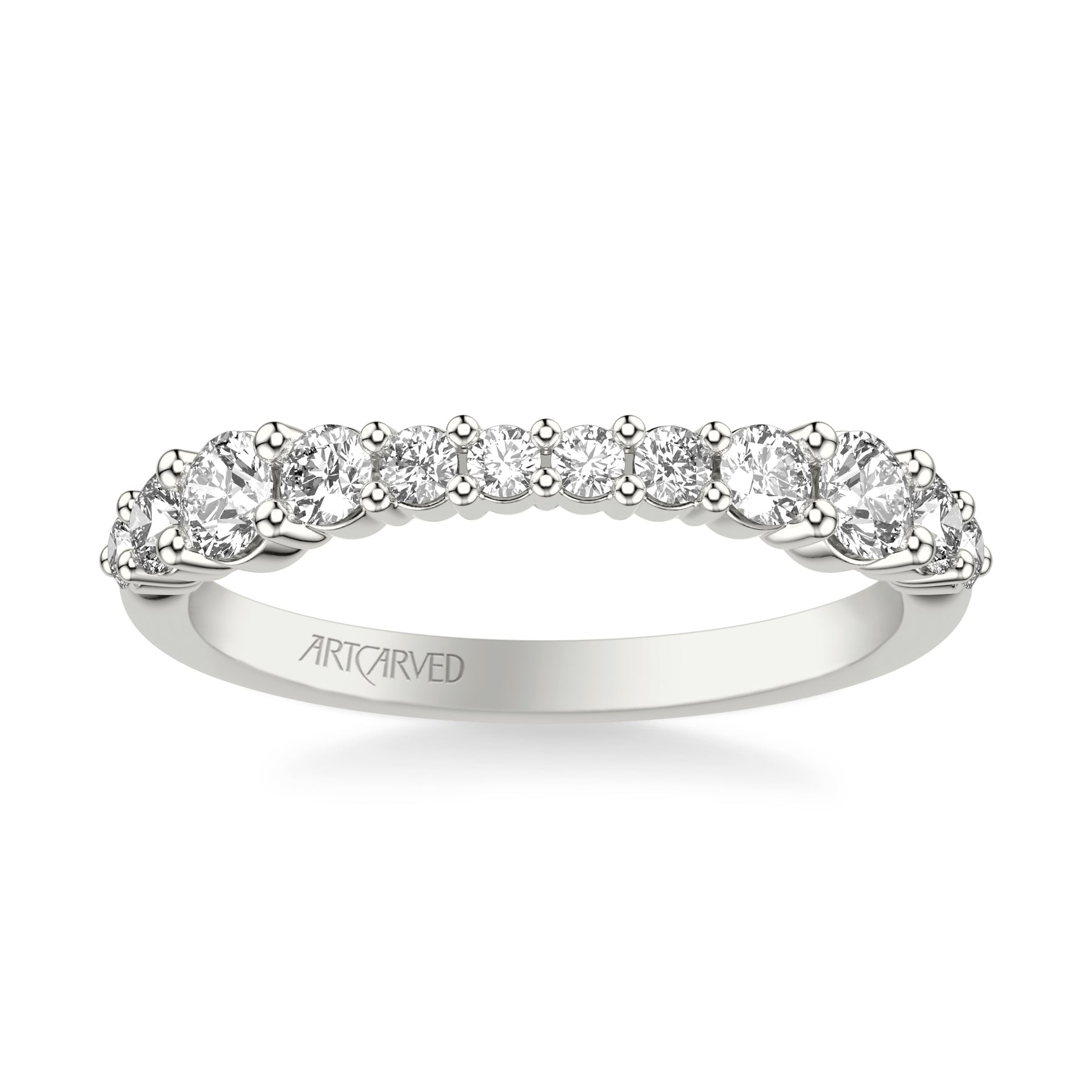 Classic Wedding Band with Graduated Round Prong Set Diamonds