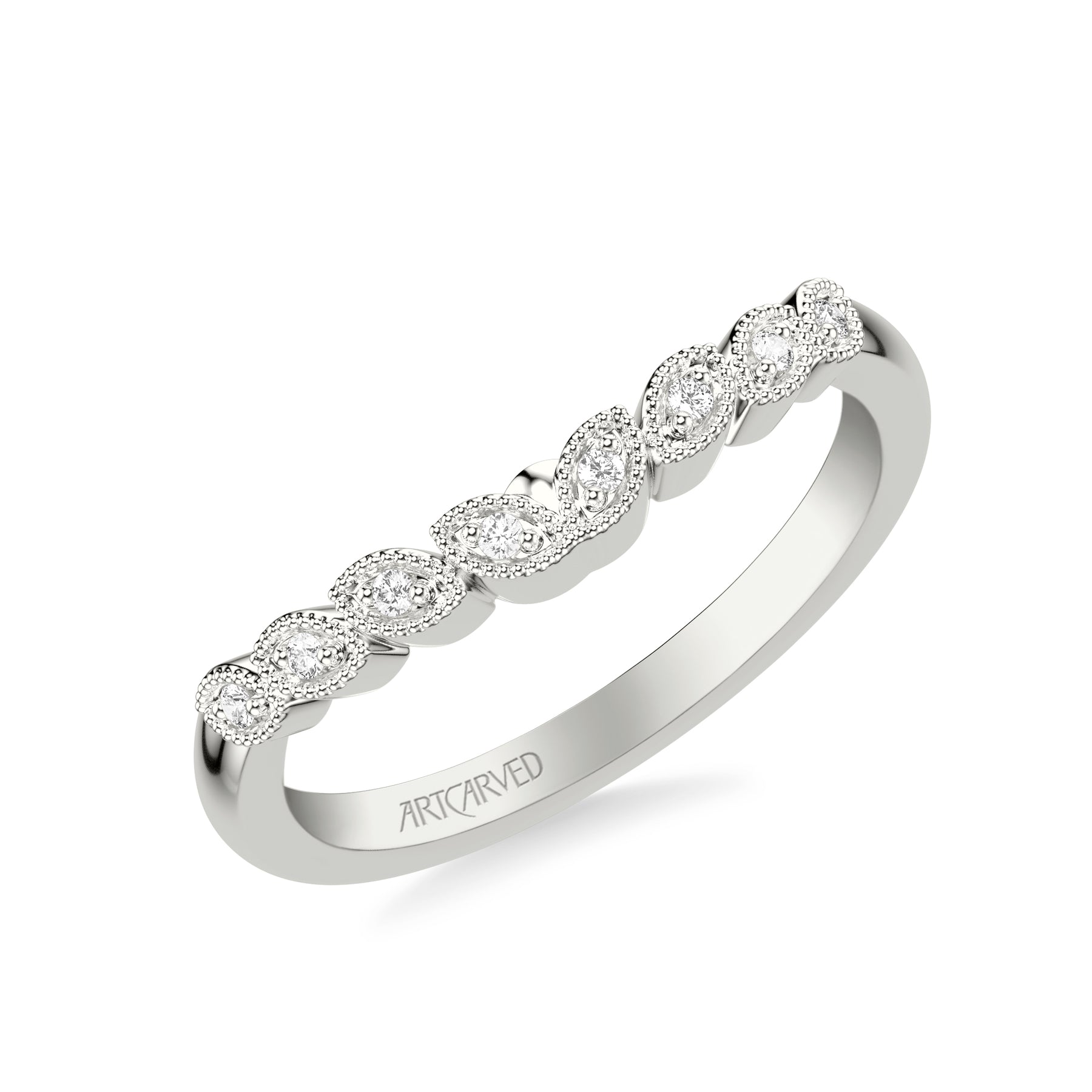 31-V309ARW-L.00 - ARTCARVED - Floral Curved Wedding Band with Milgrain Diamond Petal Motif
