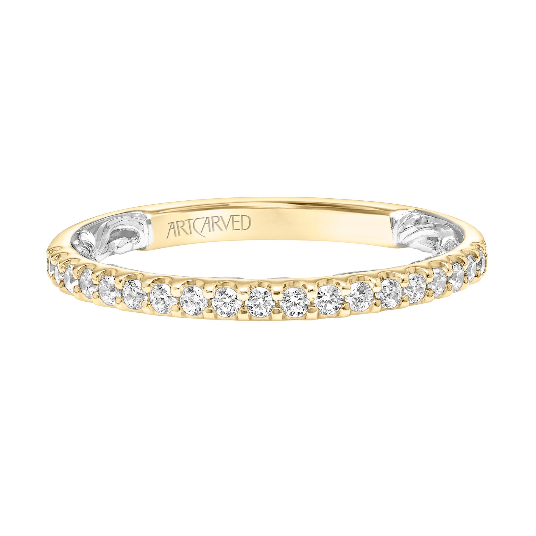 Lyric Diamond Wedding Band with Inner Carved details