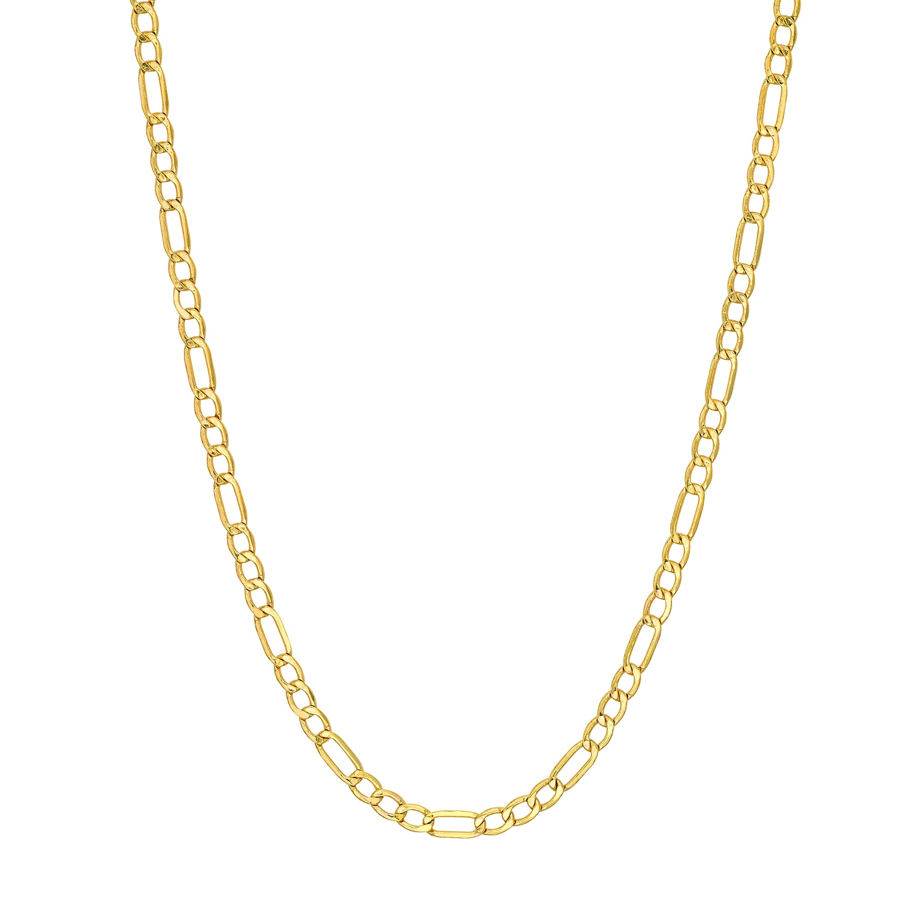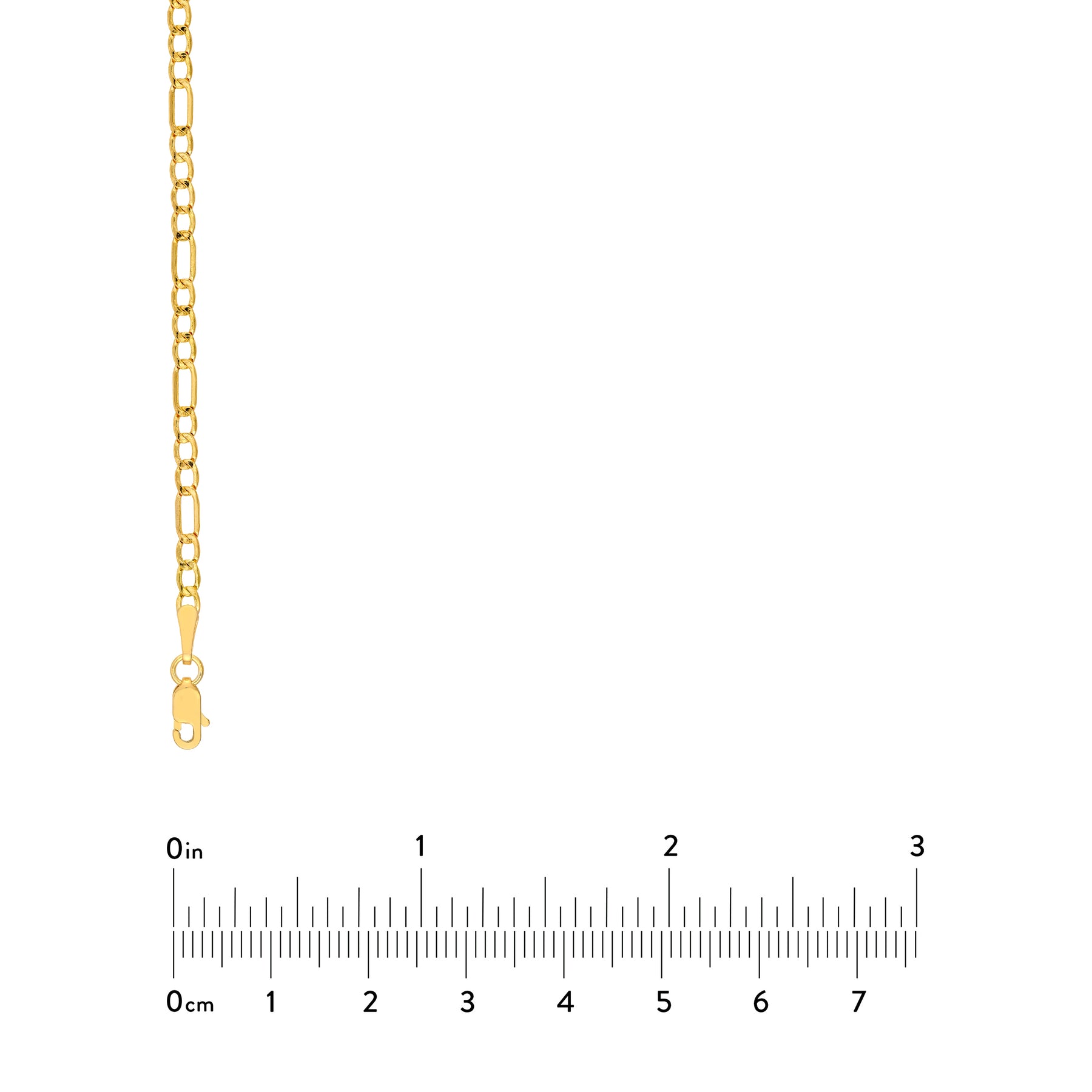 Timeless and stylish, the 2.45mm hollow beveled Figaro chain features alternating links for a sleek, eye-catching design. Perfect for everyday wear, it combines elegance with lightweight comfort.
