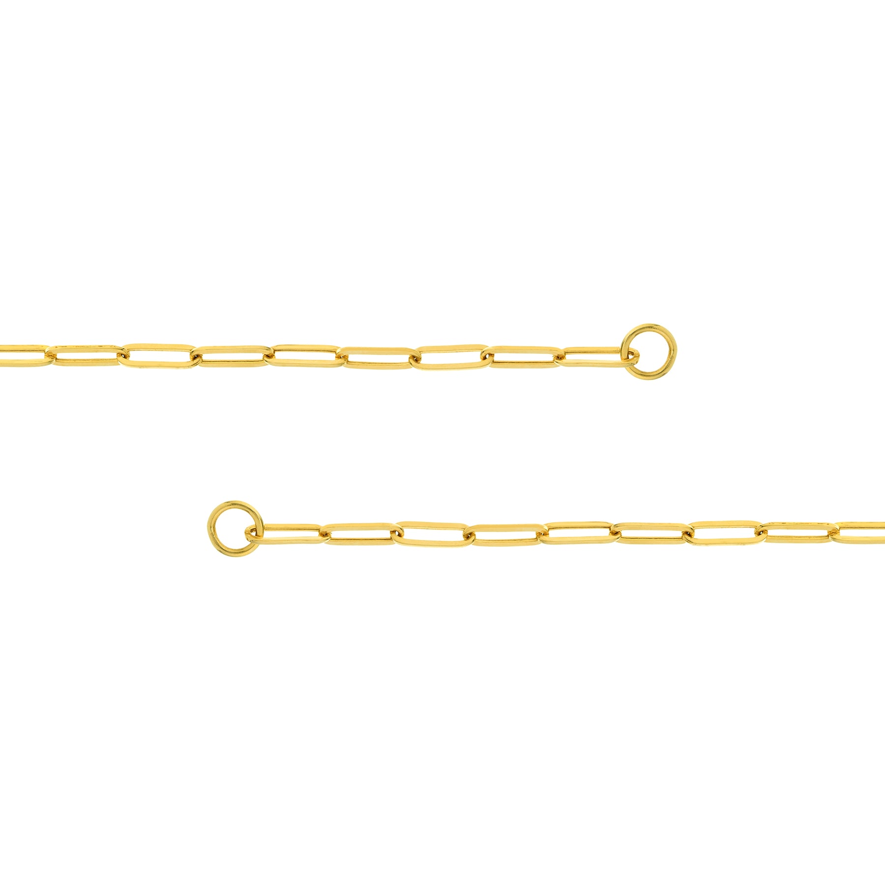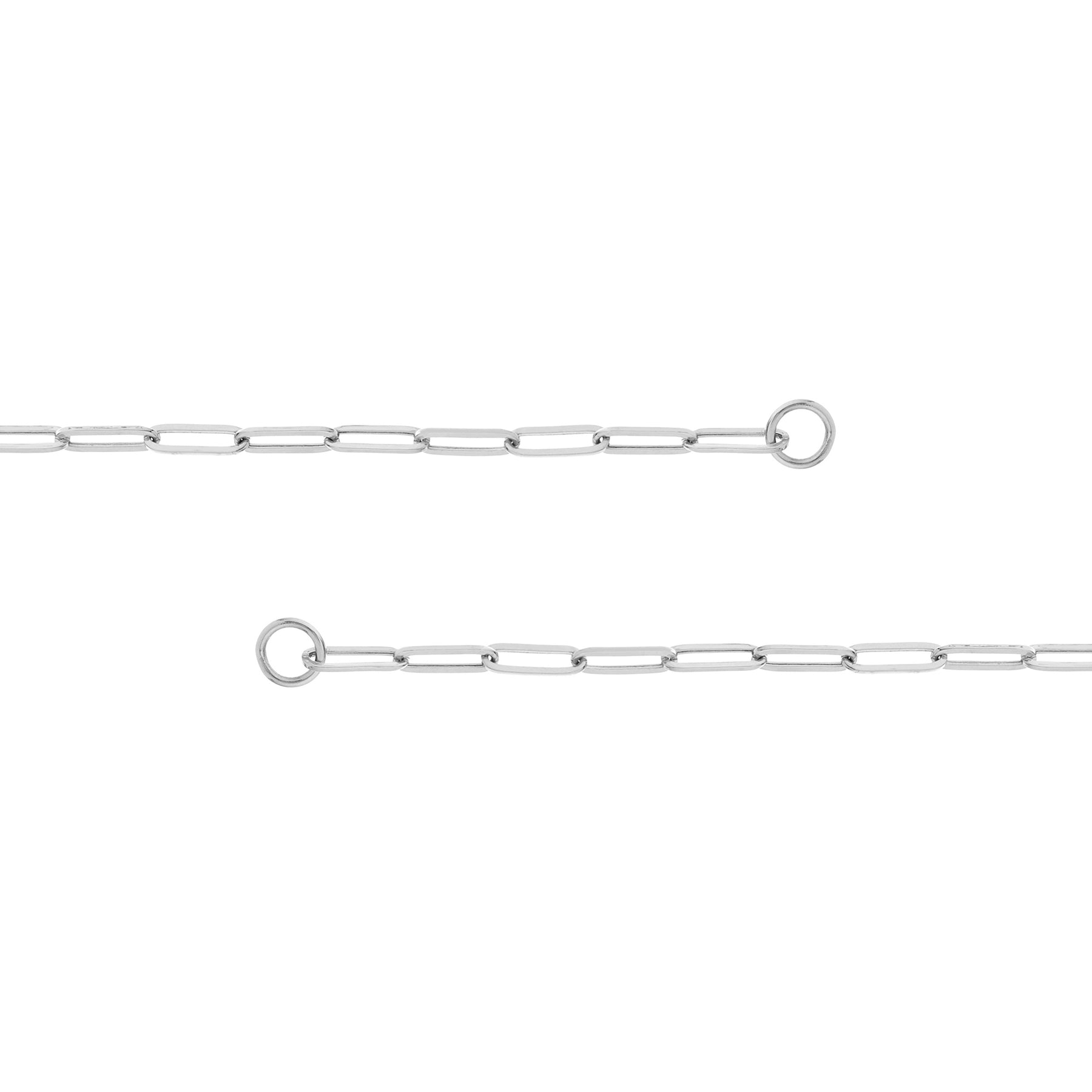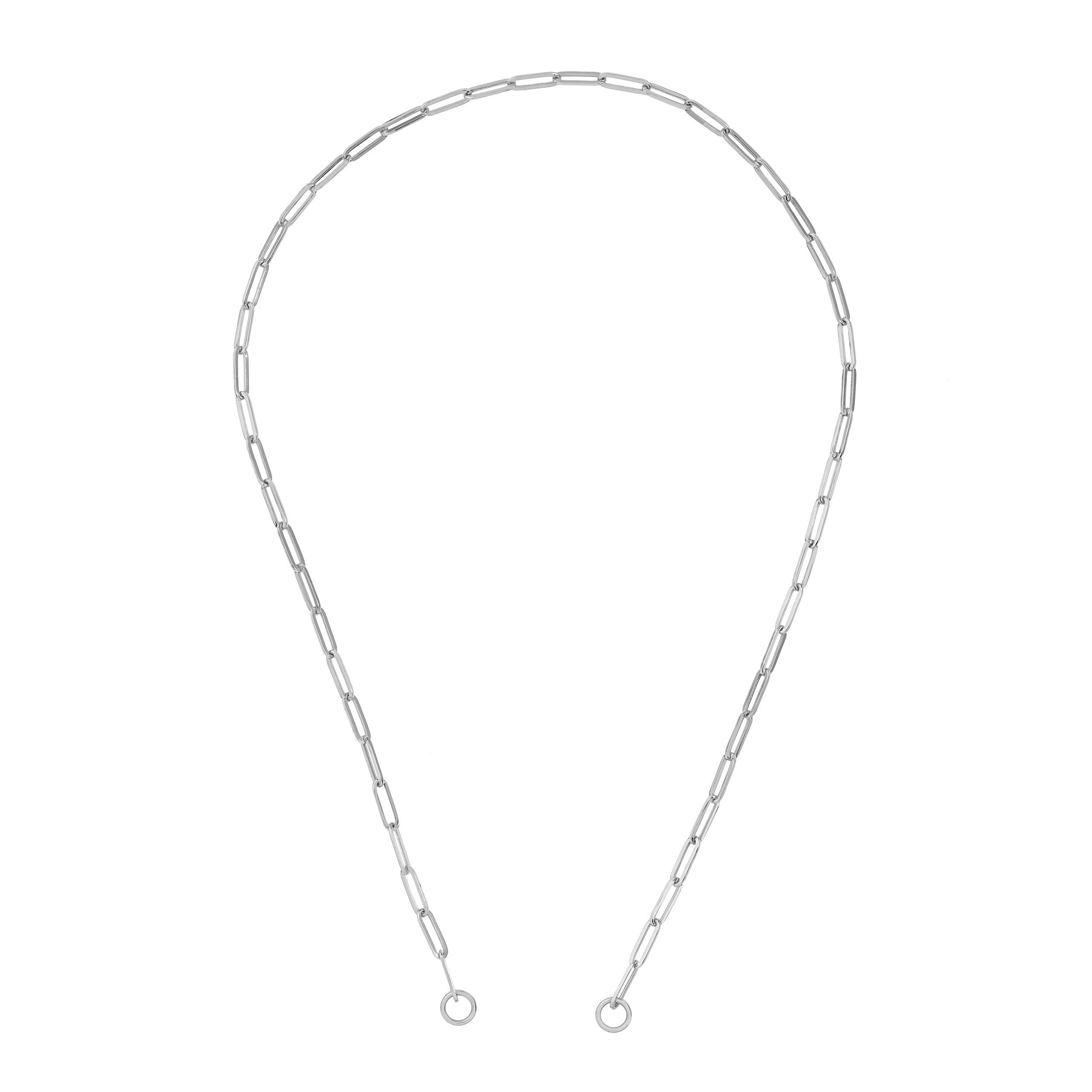 The Paper Clip Split Chain has unique oversized jump rings end caps. Connect push locks and charms to these points to create your very own custom look.
