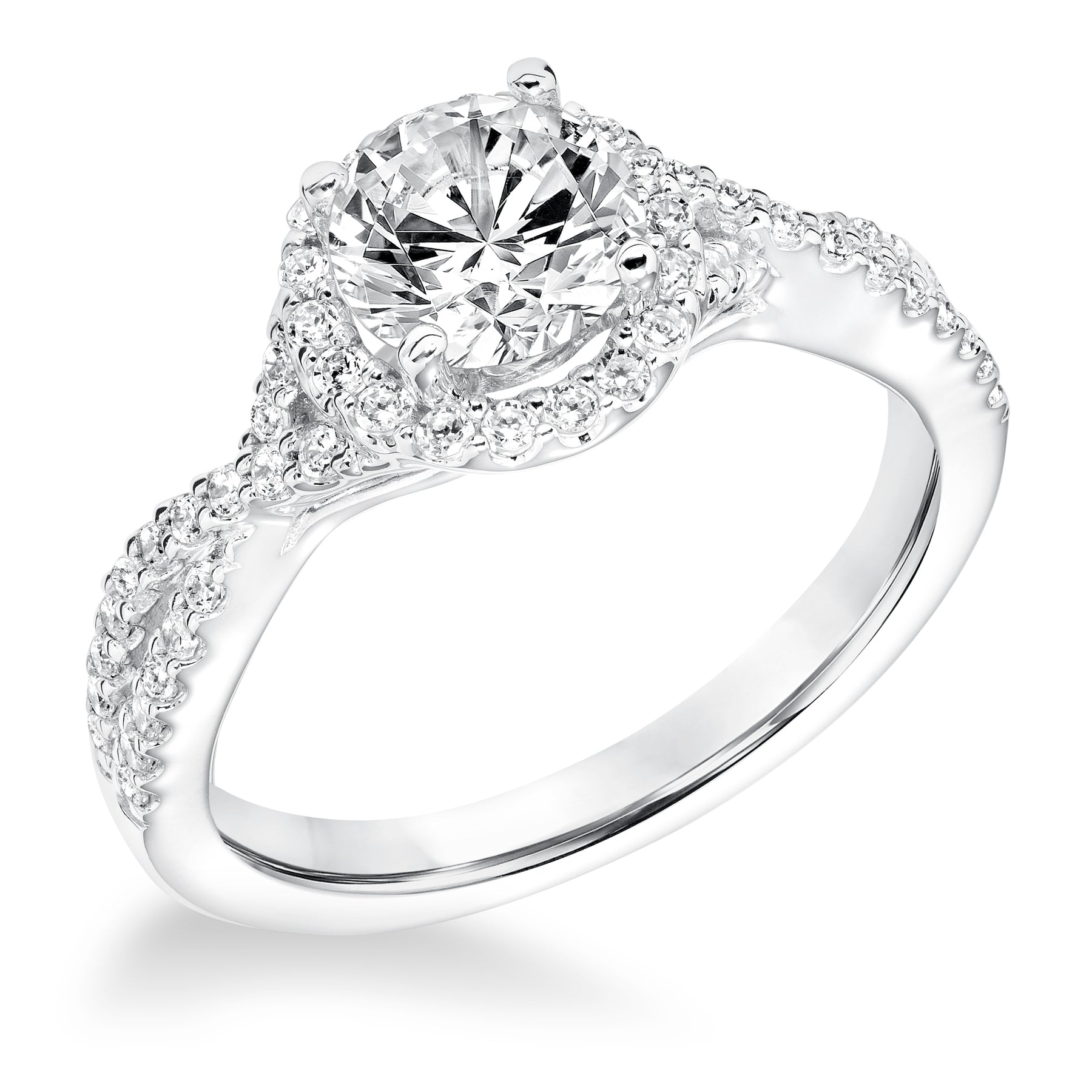 Contemporay Diamond Halo With Split Shank Engagement Ring