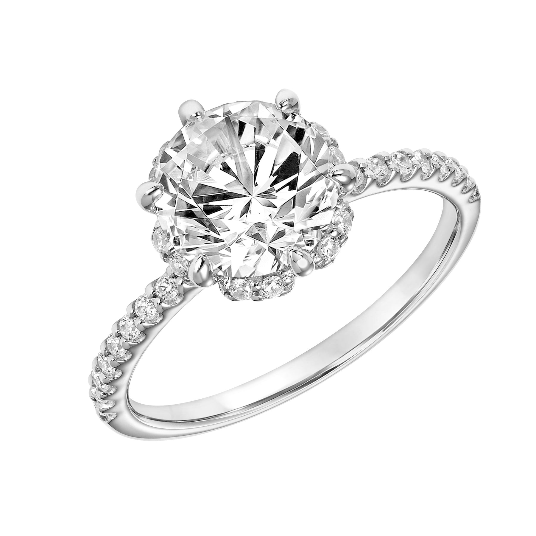 Classic Six Prong Setting Engagement Ring with Hidden Halo and Diamond Shank