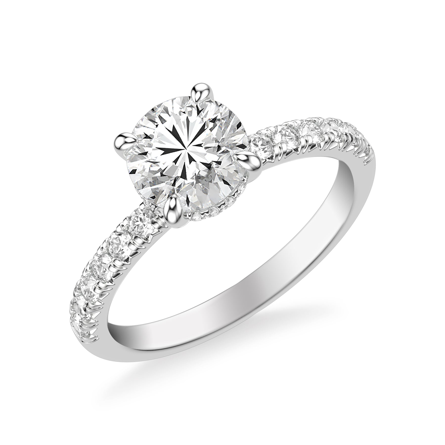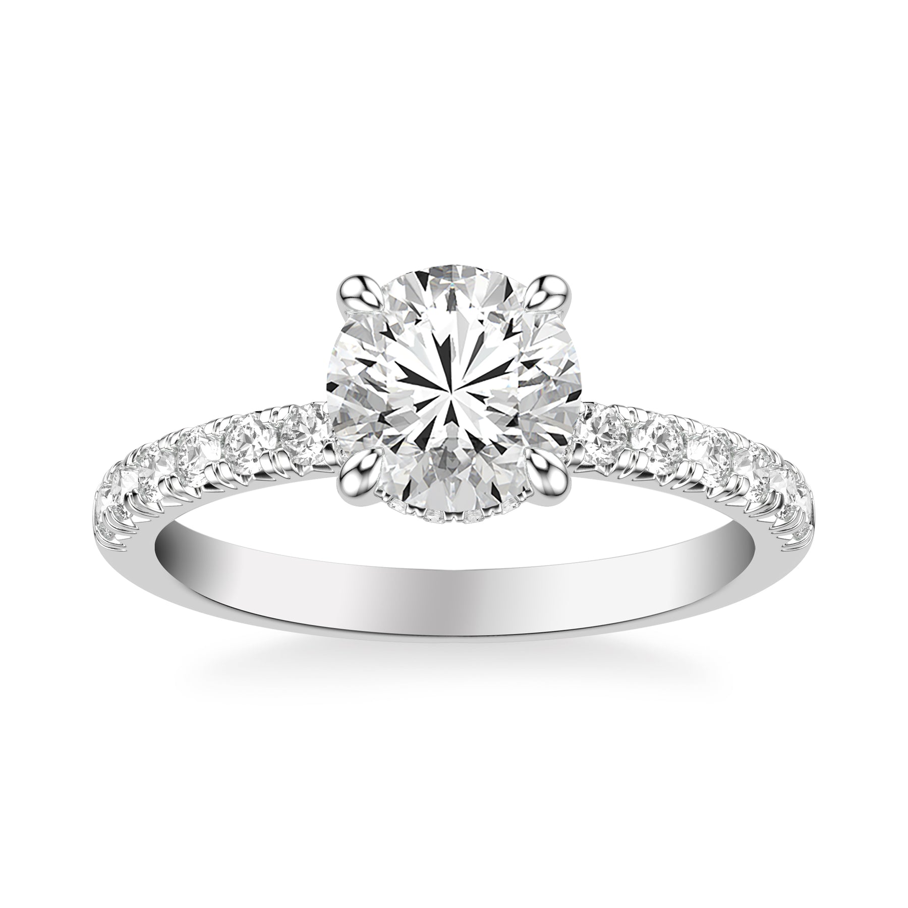 Classic Engagement Ring with Hidden Diamond Collar and Diamond Shank