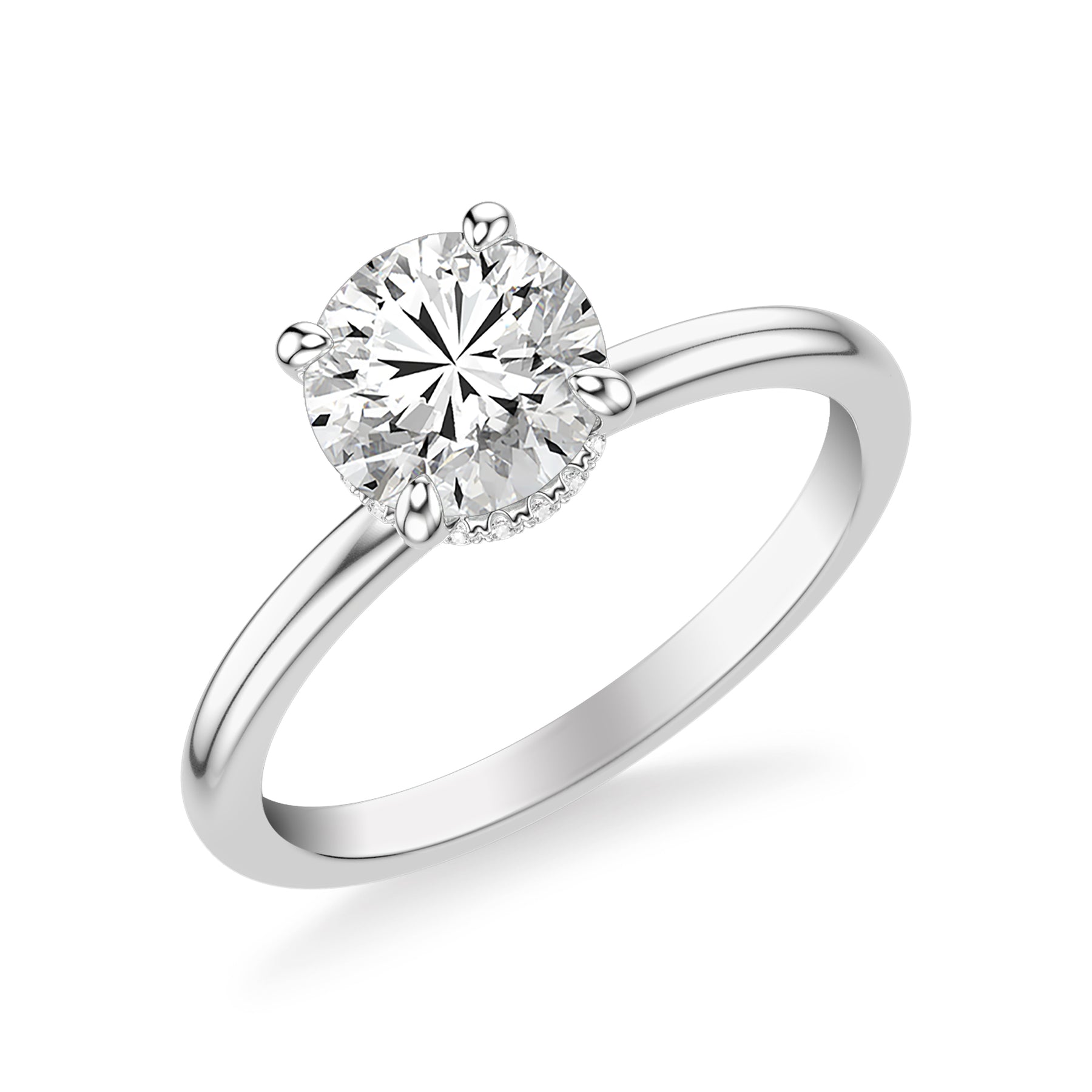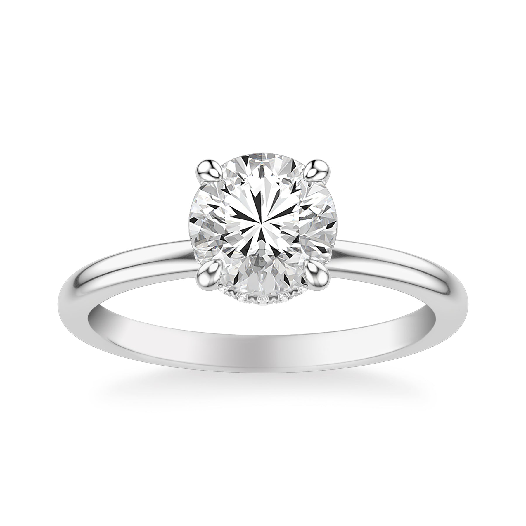 Classic Solitaire Engagement Ring with Diamond Collar and Polished Shank
