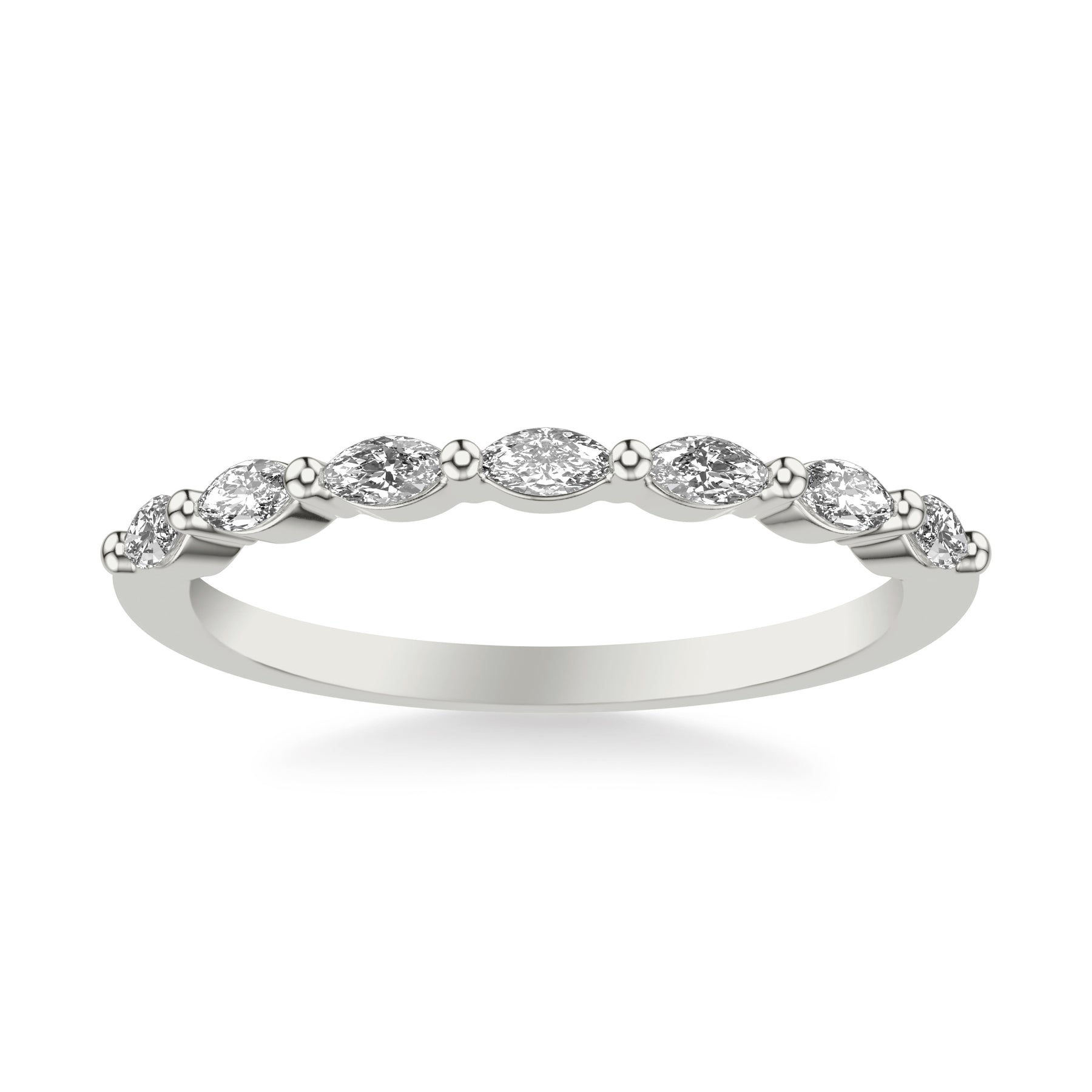 Contemporary Wedding Band with Marquise Diamonds and Shared Prongs