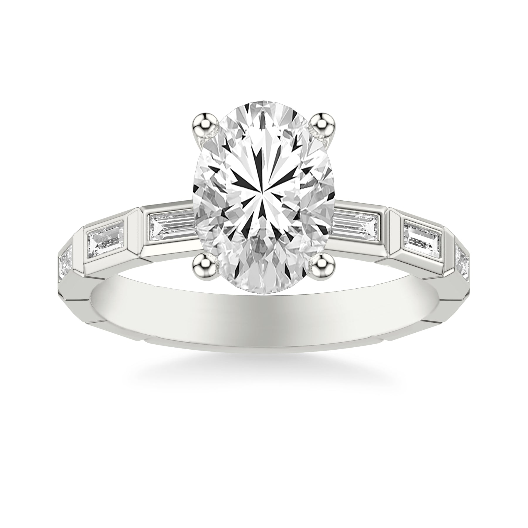 Contemporary Beveled Engagement Ring with Bezel Set East/West Baguette Diamonds