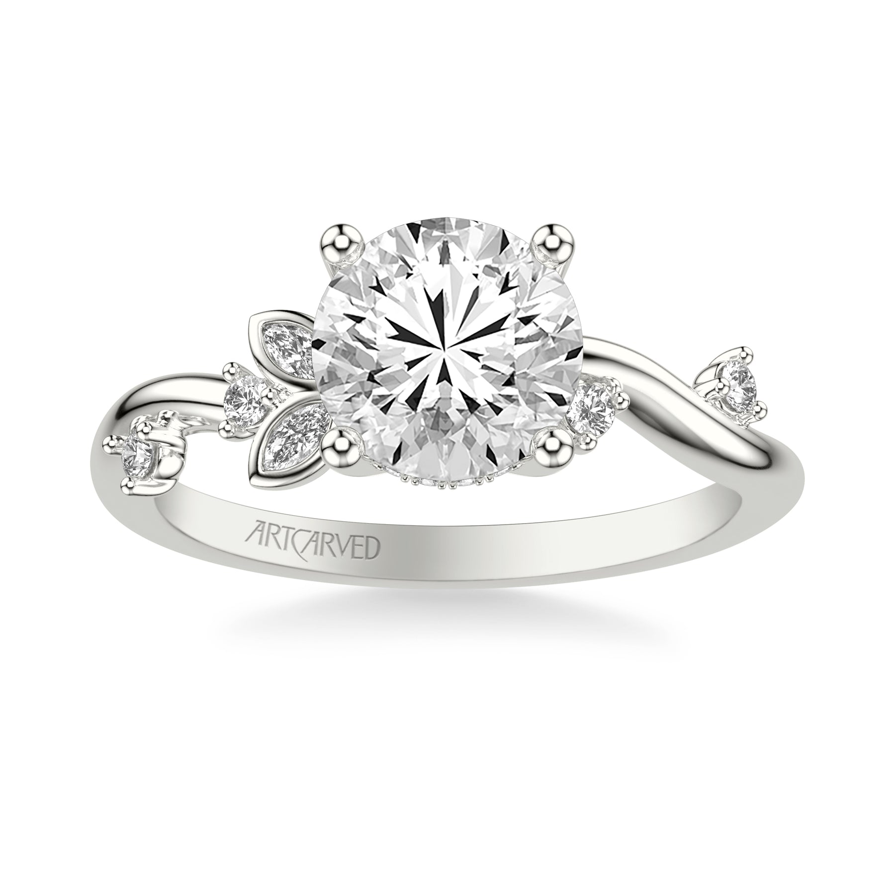 Floral Engagement Ring with Asymmetrical Marquise Diamond Petals and Round Floating Diamond Accent Shank