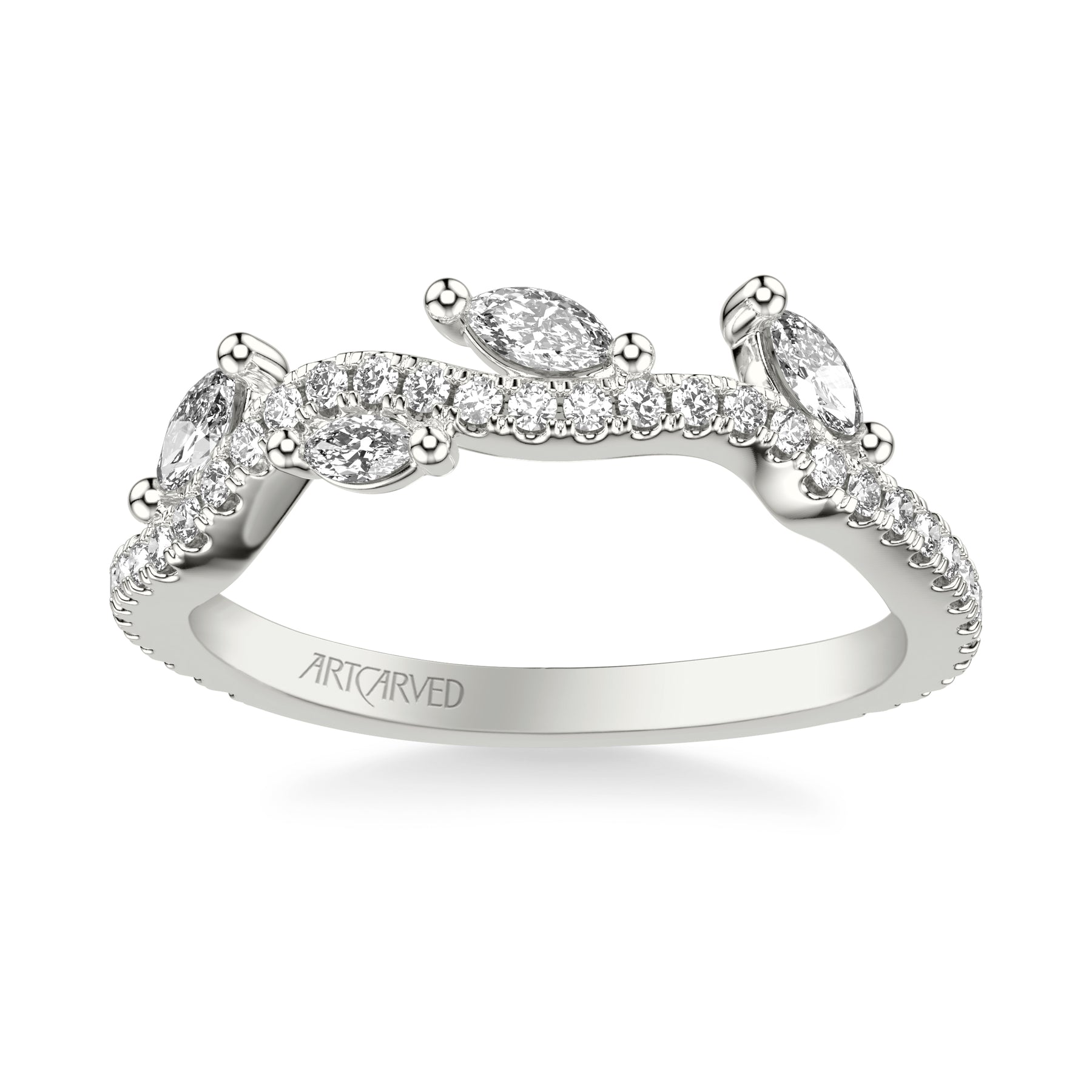 31-V1081W-L.00 - ARTCARVED - Floral Wedding Band with Floating Prong Set Marquise Diamond Petals and Organic Diamond Shank