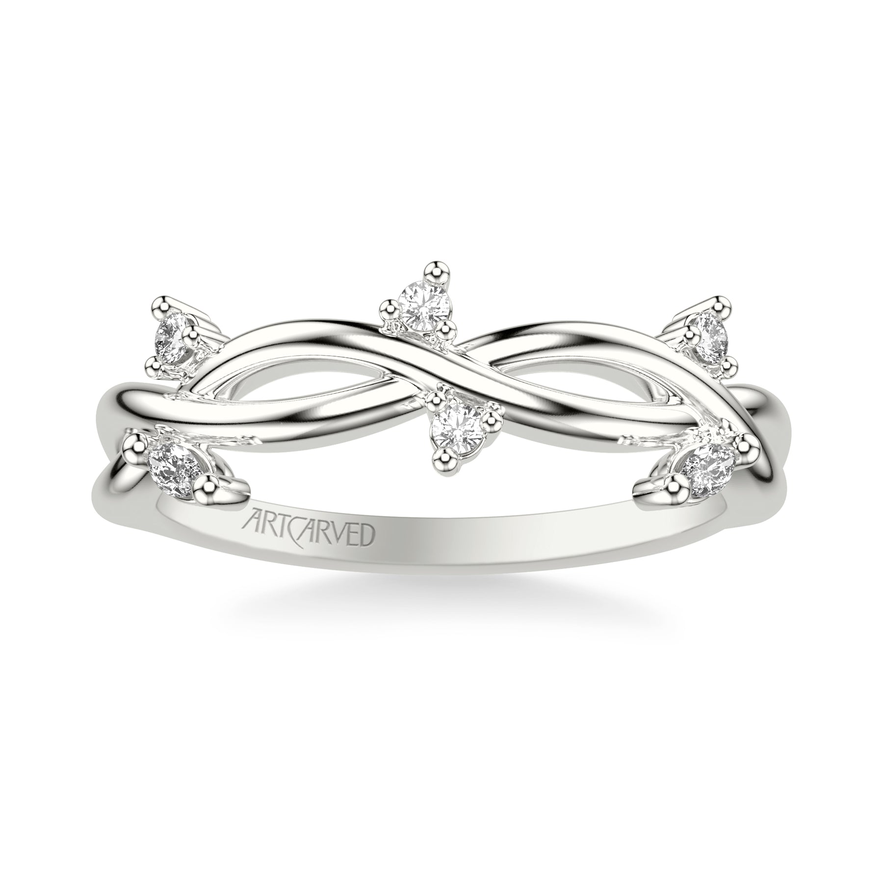 31-V1082W-L.00 - ARTCARVED - Floral Wedding Band with Floating Prong Set Marquise and Round Diamond Accents and Twisted Polished Shank