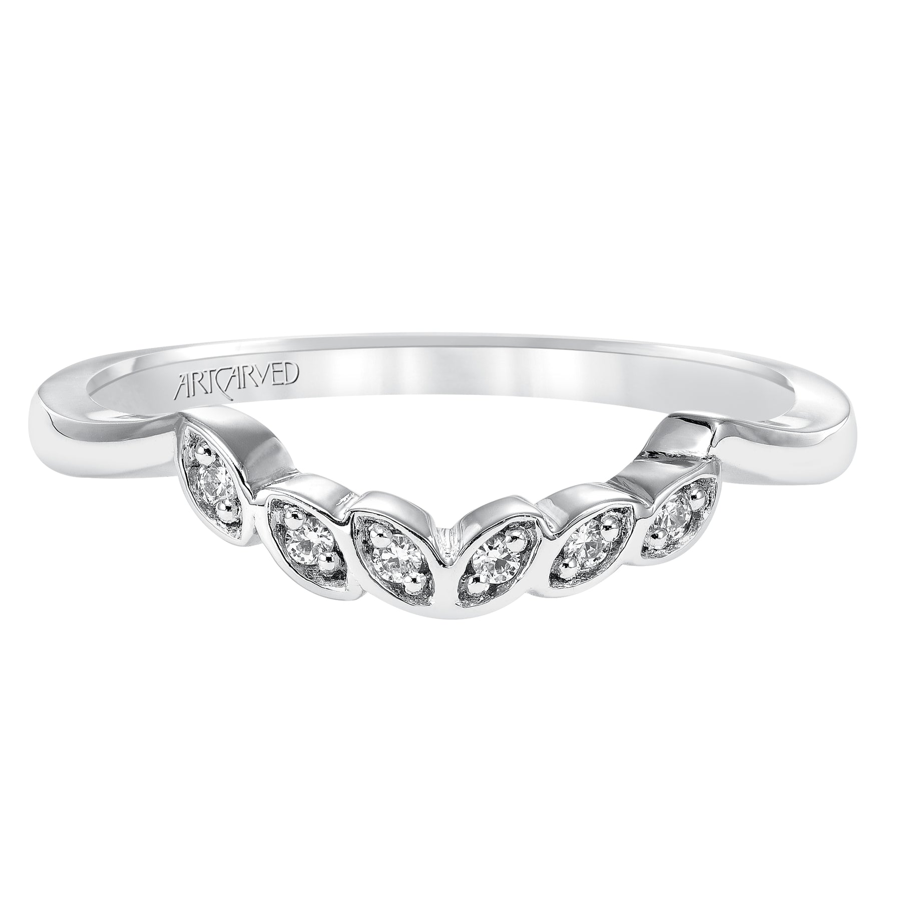 31-V317ERW-L.00 - ARTCARVED - Floral Curved Wedding Band with Diamond Petal Accents