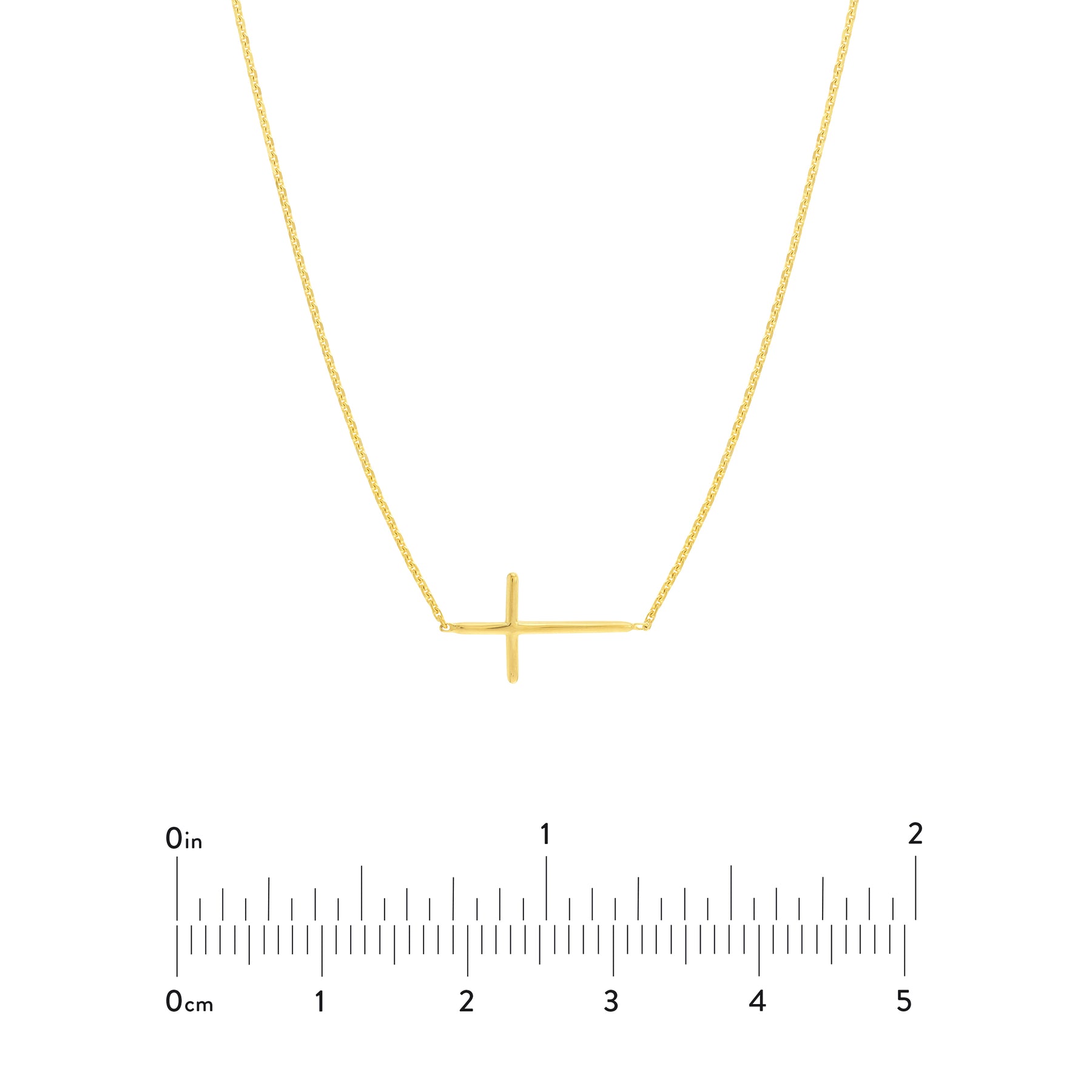 Show off your faith with dainty fashion jewelry. This 14K gold sideways mini cross necklace adds a graceful element to any neckline.