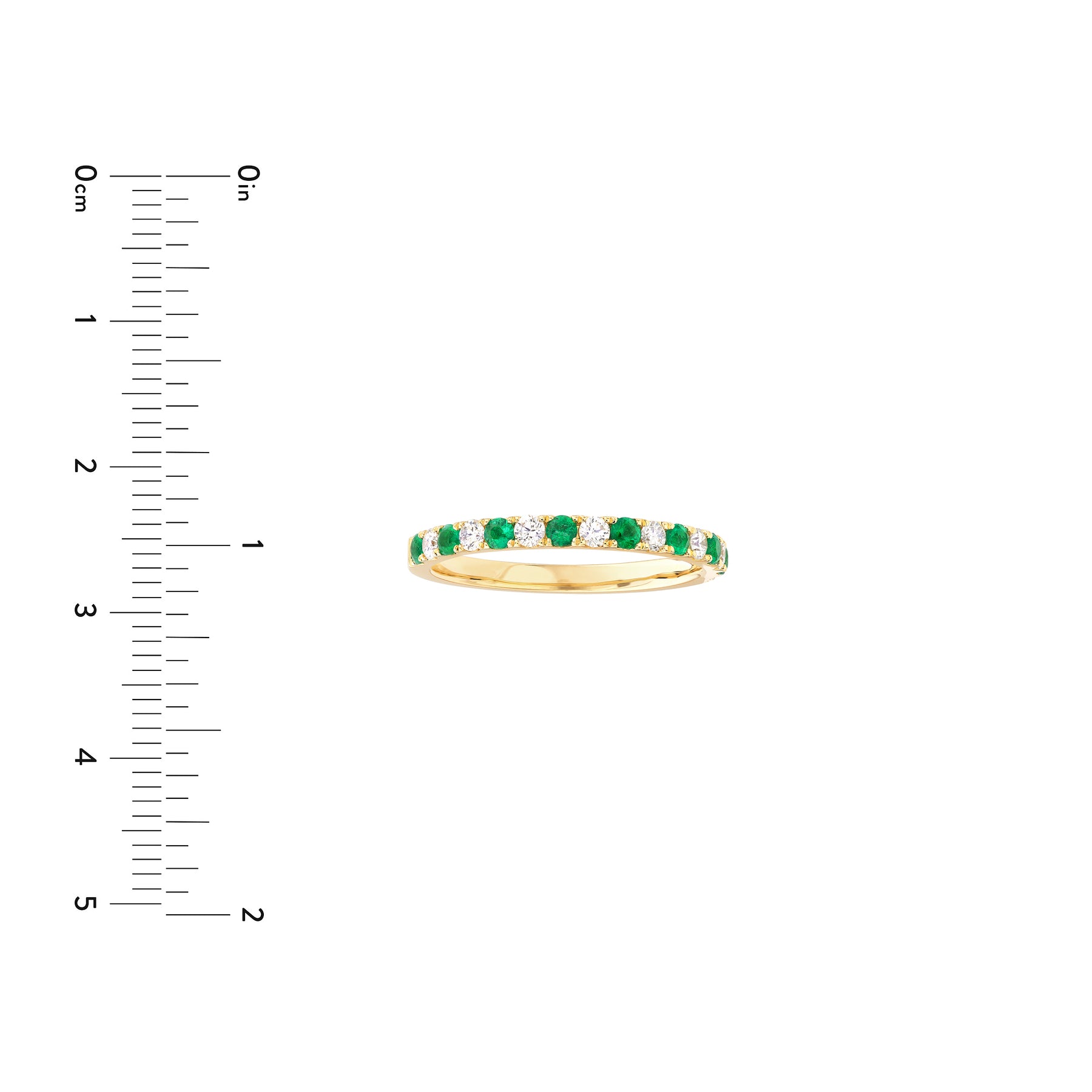 An everyday accessory you'll never go without. Featuring 1/4tcw, 2mm diamonds and emeralds alternating halfway around the band.