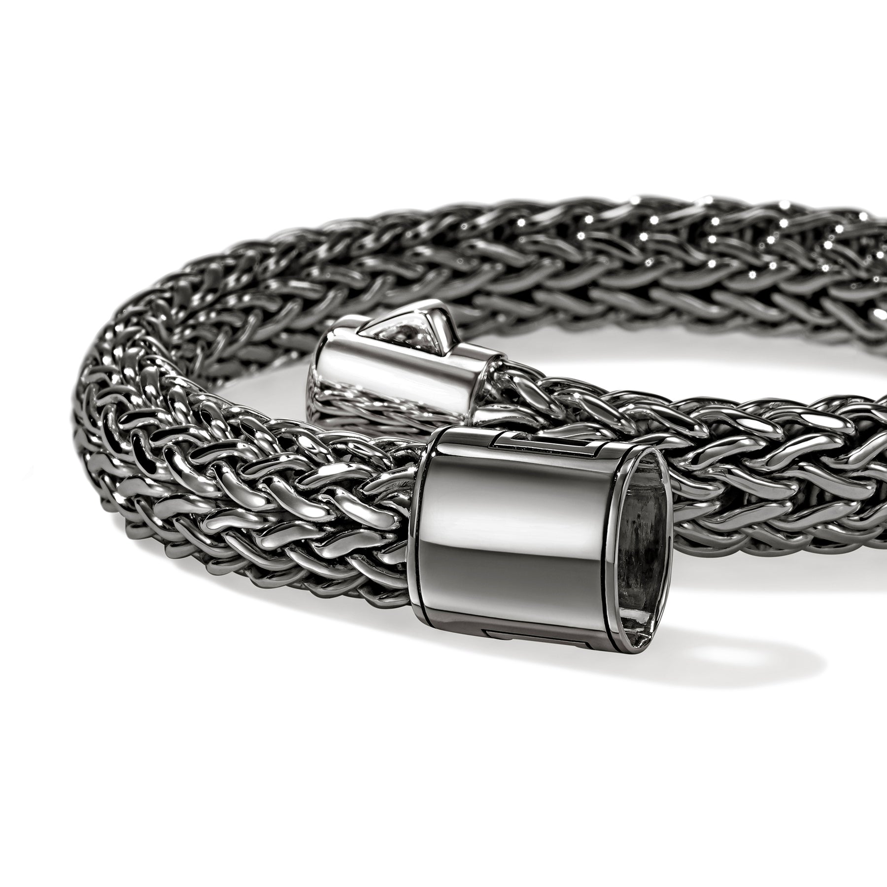 Icon Silver 10.5mm Large Bracelet with Pusher Clasp with Black Rhodium, Size UM