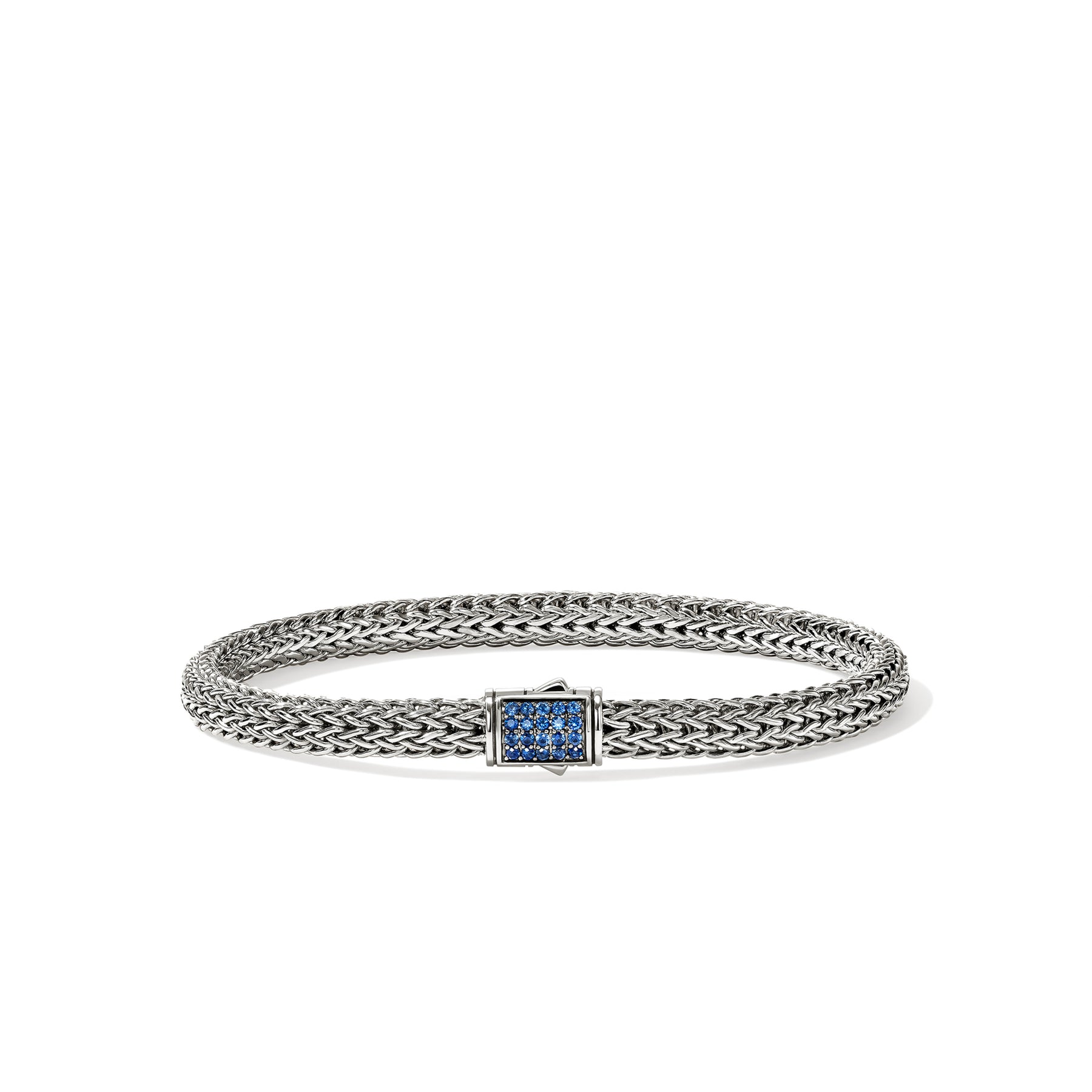 Icon Silver 5mm Extra Small Bracelet with Blue Sapphire with Pusher Clasp, Size US