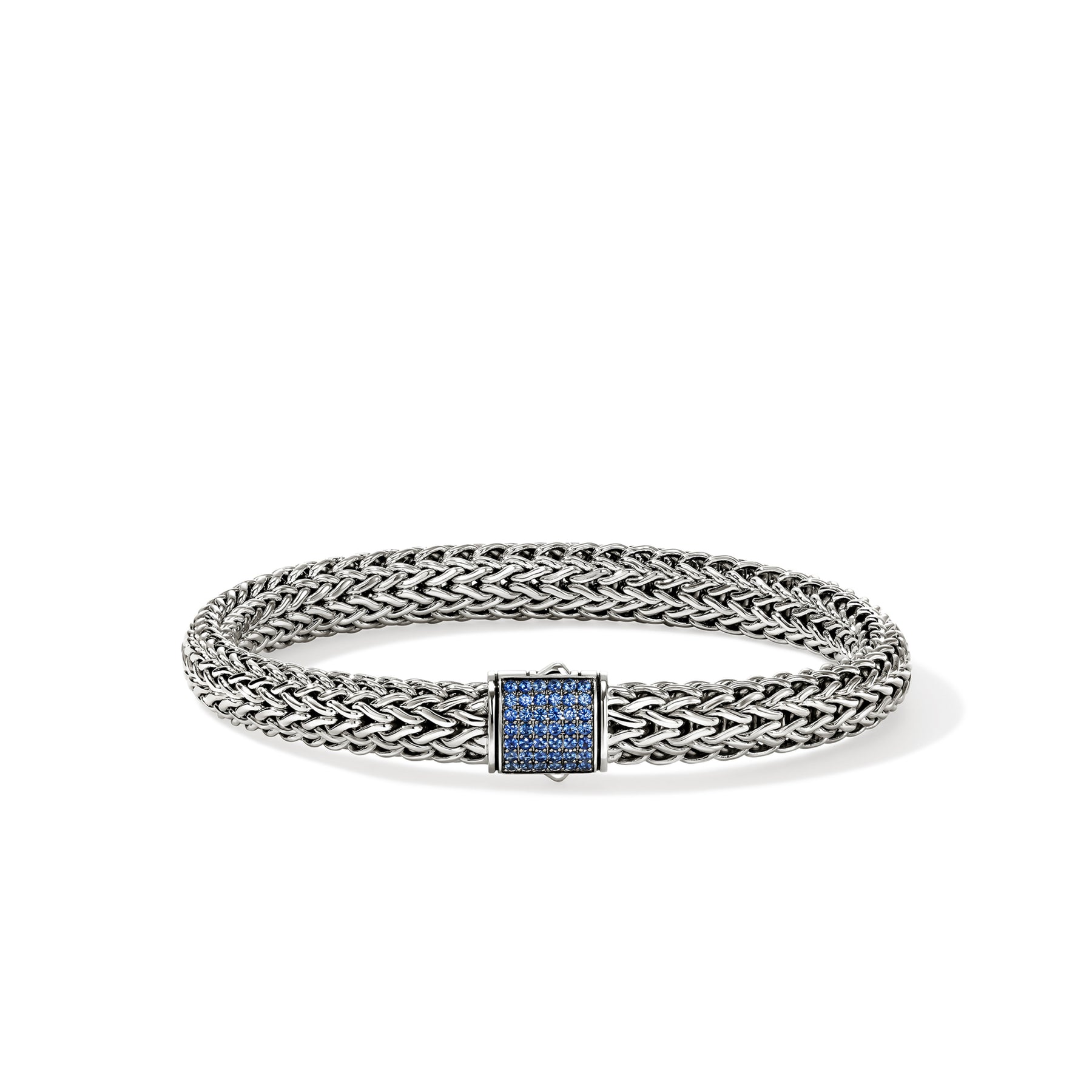 Icon Silver 7.5mm Medium Bracelet with Blue Sapphire with Pusher Clasp, Size US