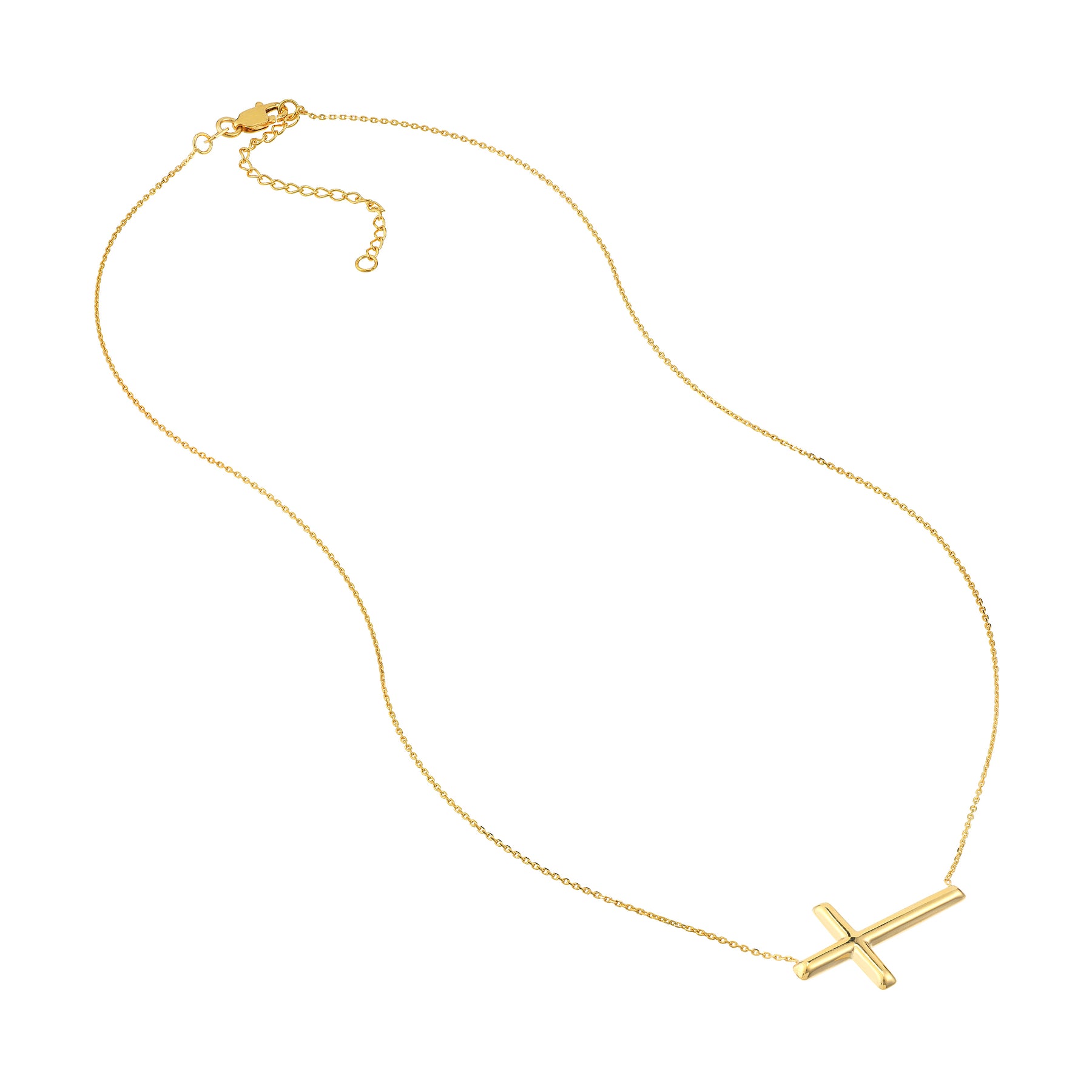 Show off your faith with elegant conviction by wearing this sideways cross necklace in 14K gold.