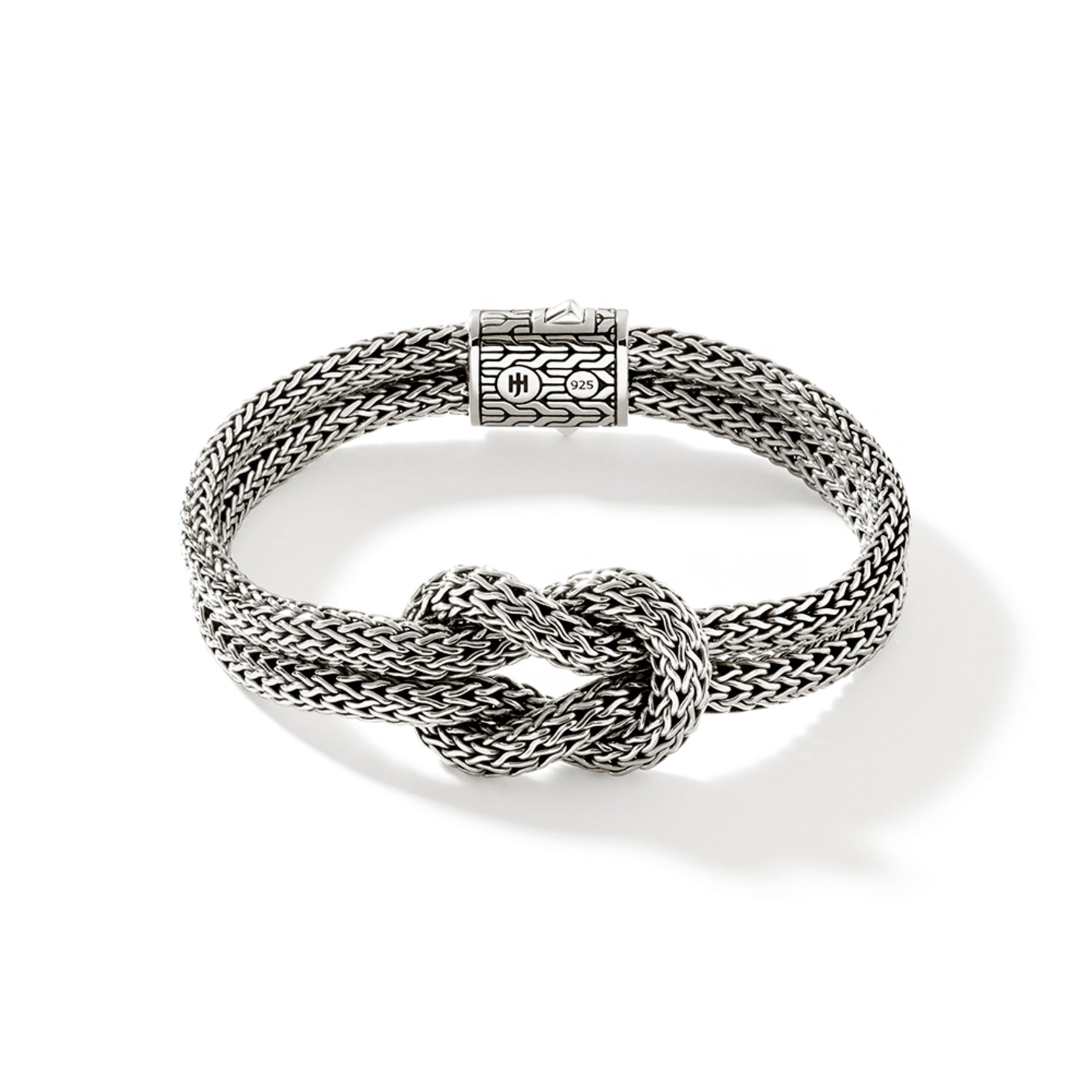 Love Knot Silver 10mm Chain Double Row Bracelet with Pusher Clasp, Size US