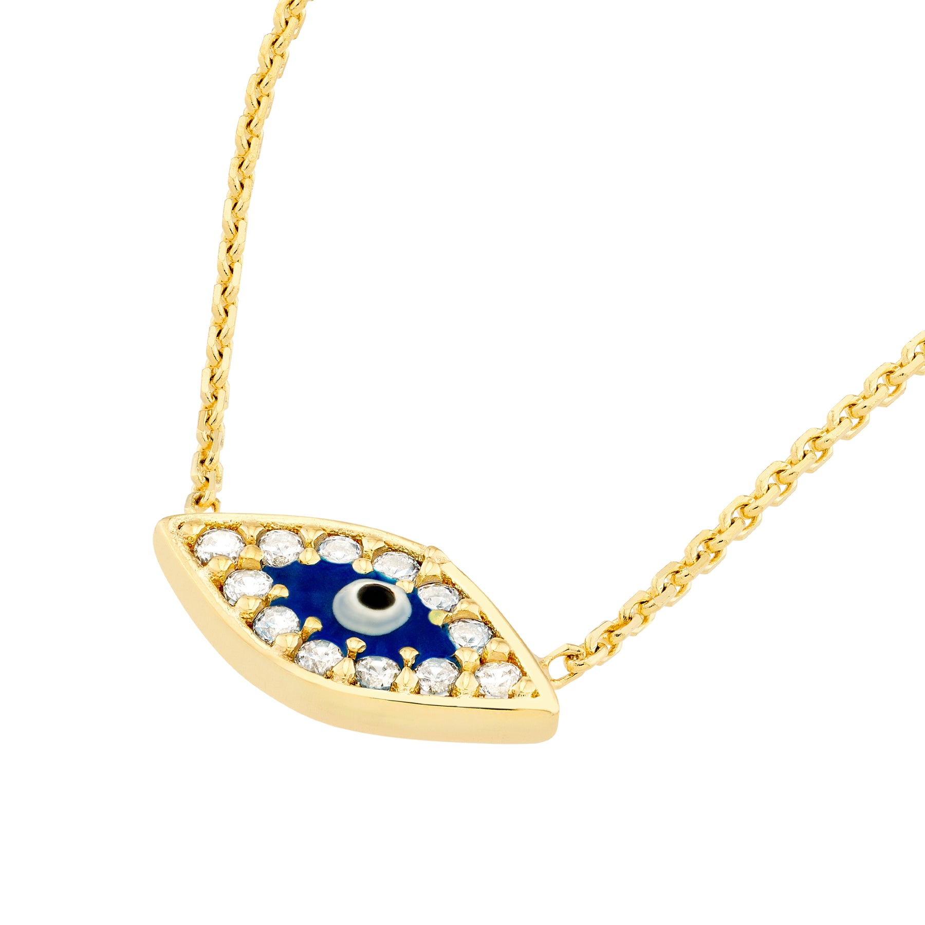 Hold this ancient symbol of protection close to your heart. This mini CZ evil eye necklace hangs on an adjustable chain, and is a must have.