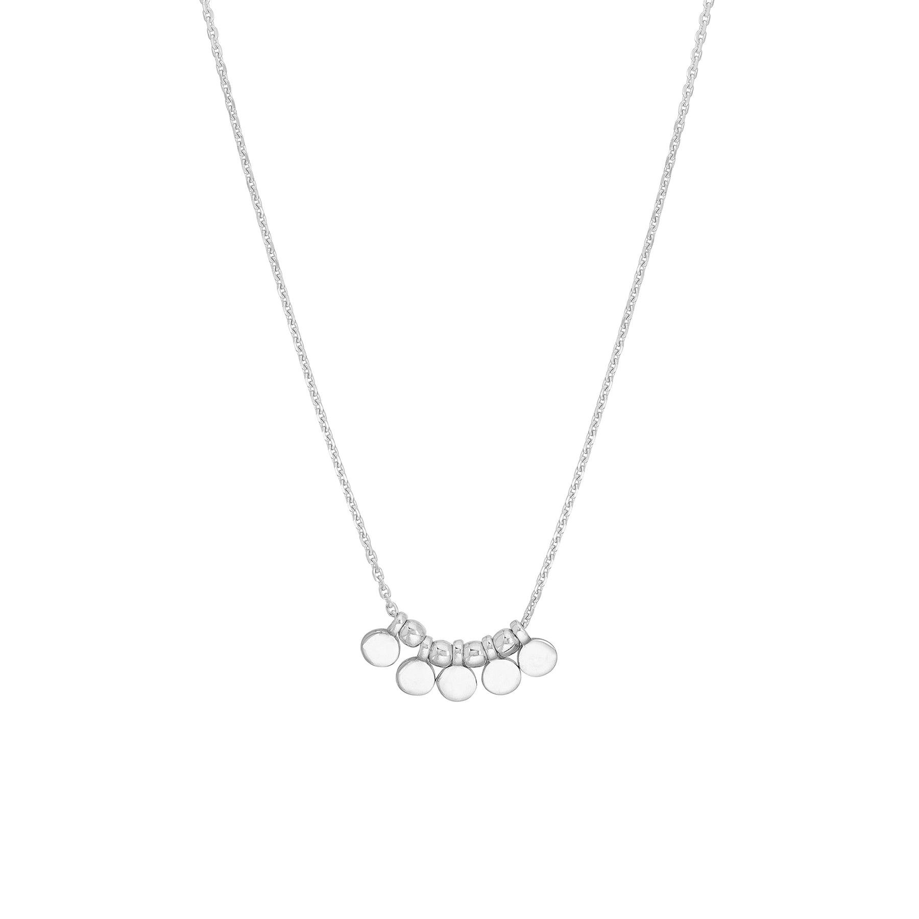 A mini dangle necklace adds a boho vibe to any outfit. This adjustable disc dangle and bead station necklace is crafted in 14K gold.