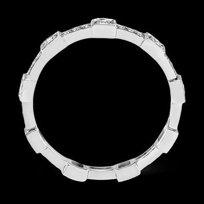 This white gold band form a modern style band set with .33 ctw of striking round cut white diamond accents. Perfect for stacking.