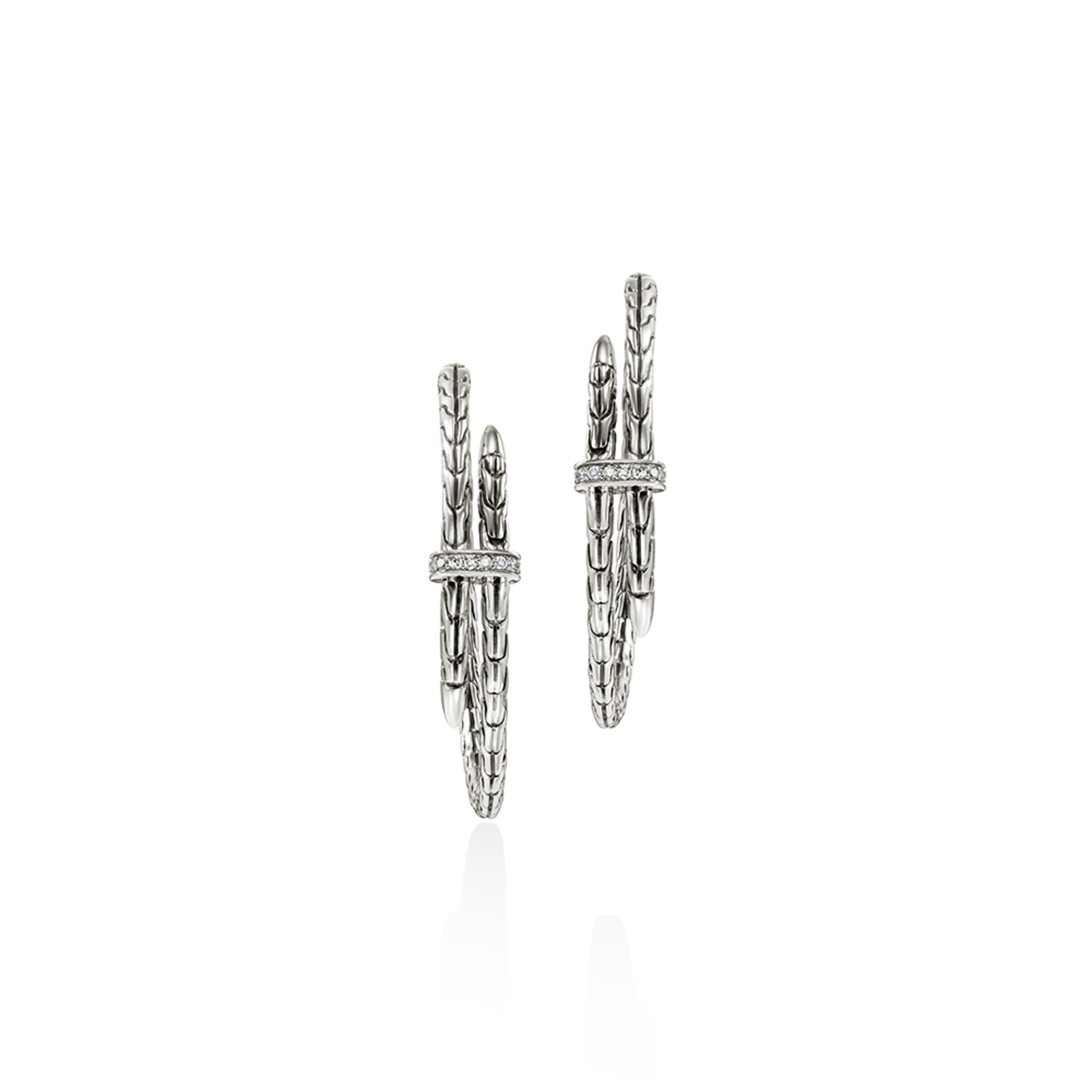 Spear Hoop Earring, Silver, Diamonds, 40MM