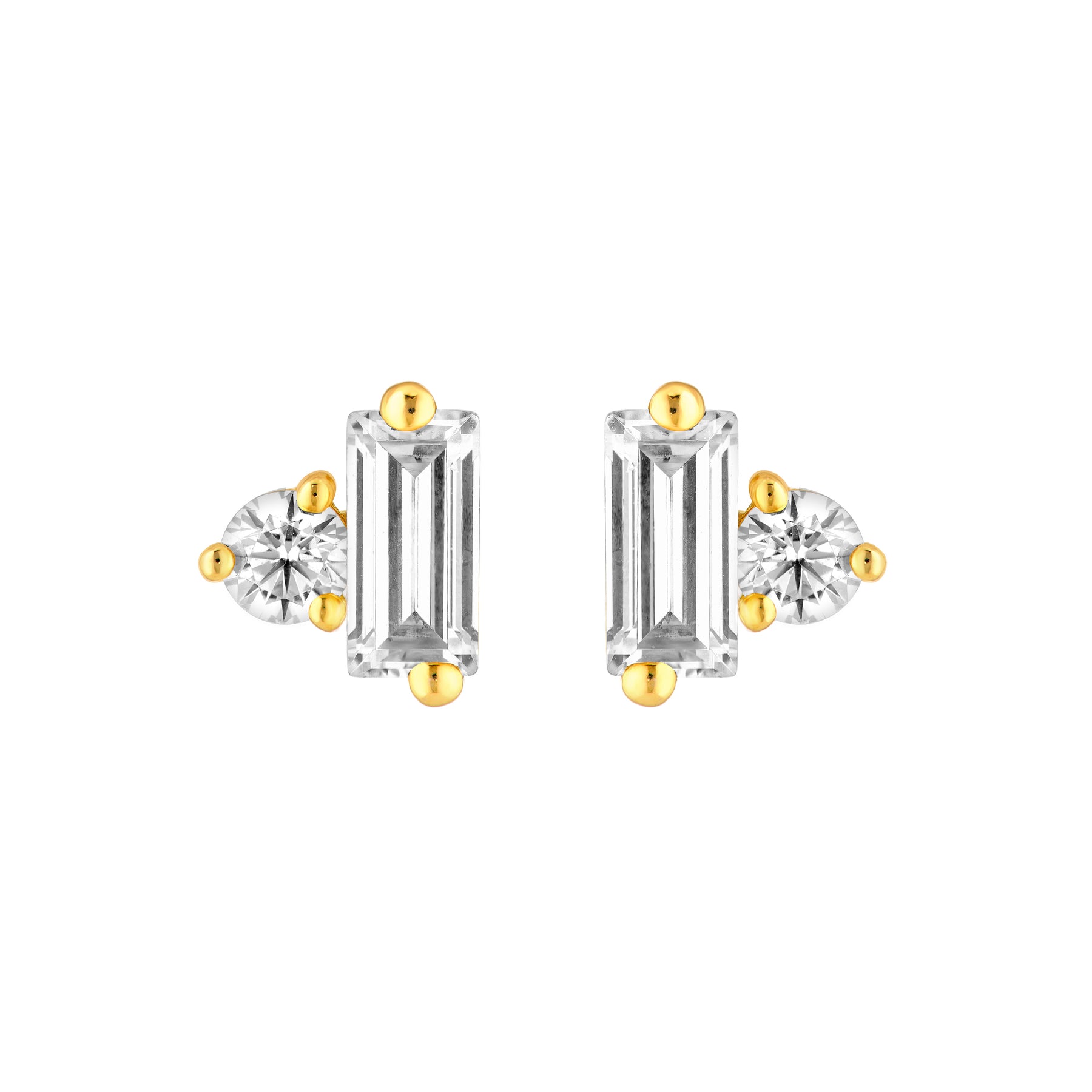7/8tcw Square Baguette & Round Diamond Stud Earrings