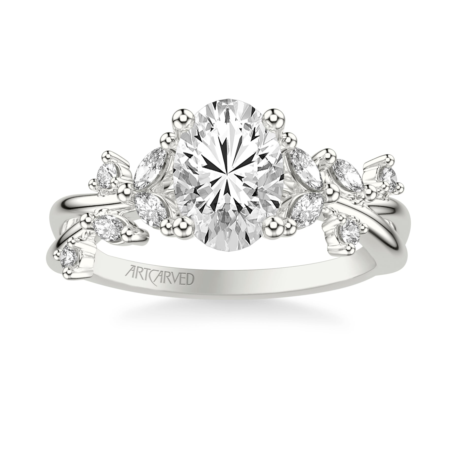 Floral Engagement Ring with Prong Set Marquise and Round Diamond Accents and Twisted Polished Shank