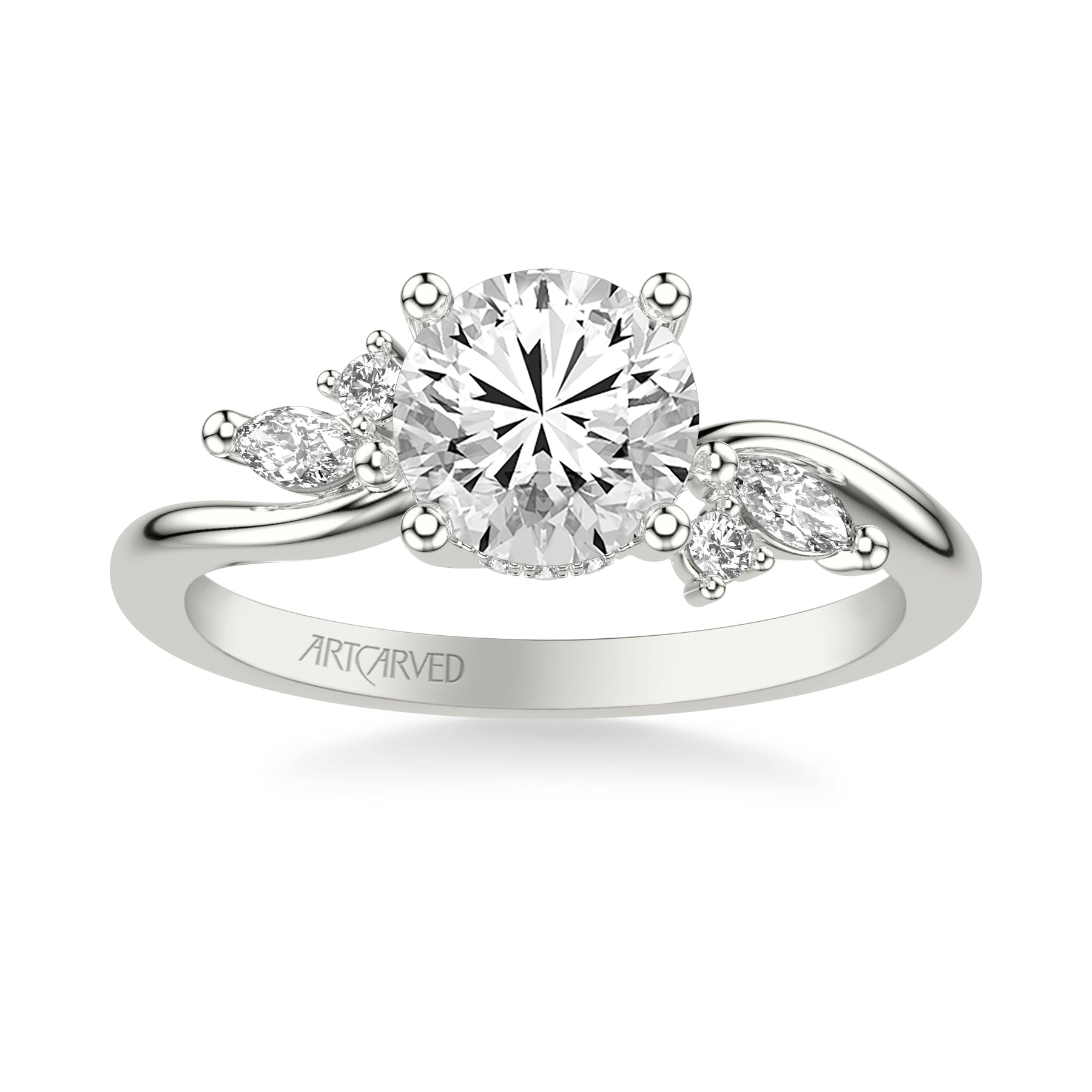 Floral Engagement Ring with Prong Set Marquise and Round Diamond Accents and Bypass Polished Shank
