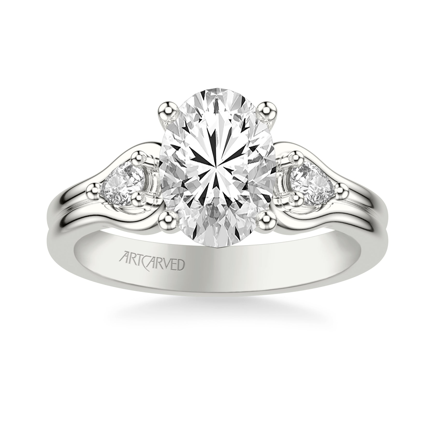 Classic Three-Stone Engagement Ring with Pear Side Stones and Double Row Polished Shank