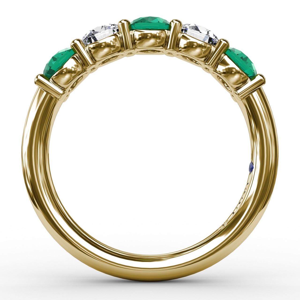 Chunky Emerald and Diamond Shared Prong Anniversary Band