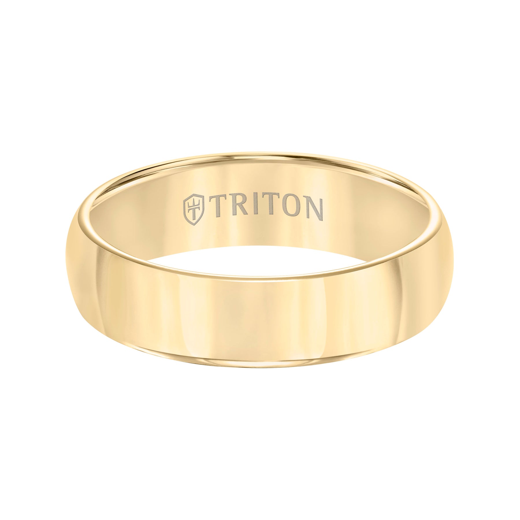 Domed Yellow Tungsten Carbide Comfort Fit Band with Bright Polish
