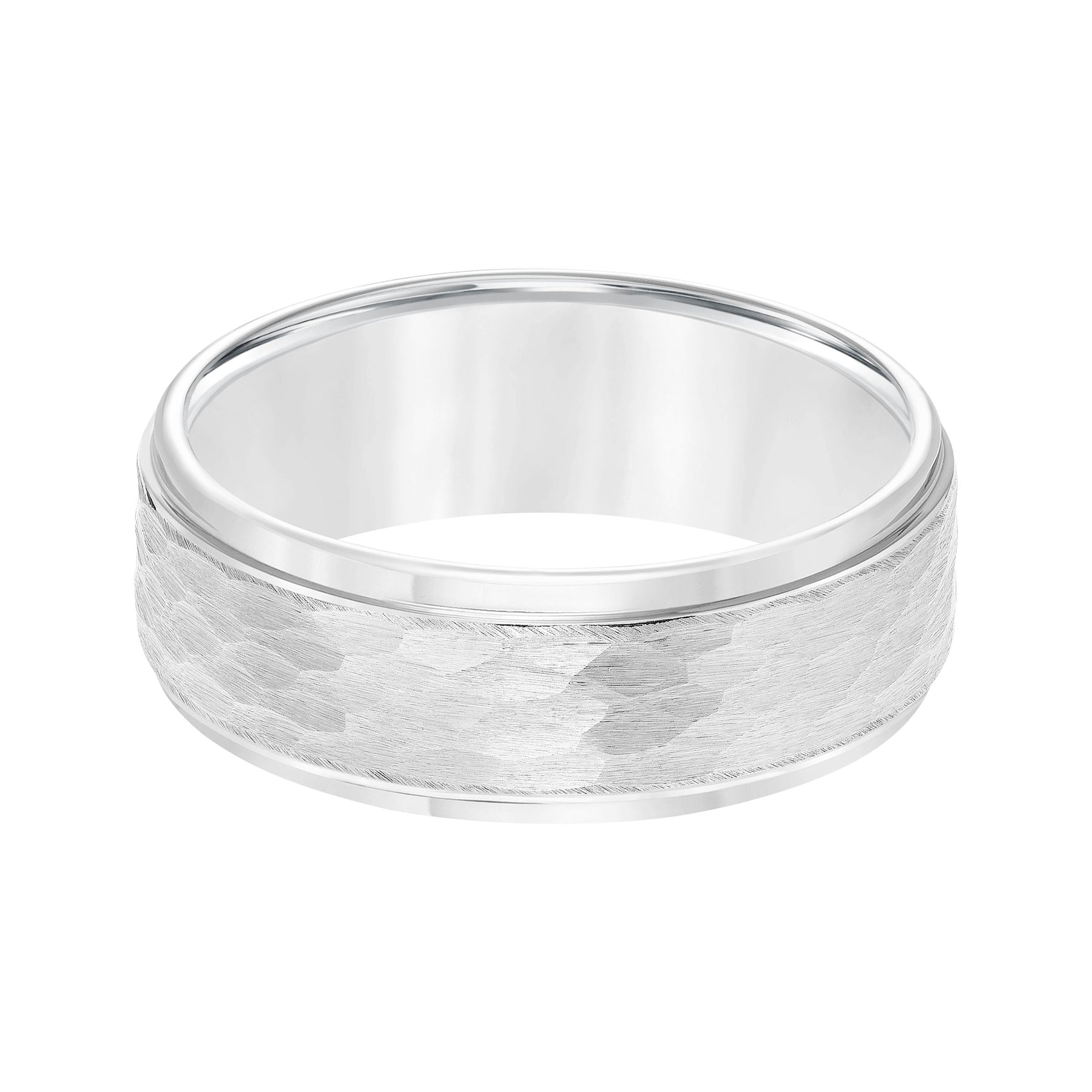 8mm Tungsten carbide Step Edge Comfort Fit band with center hammered texture
