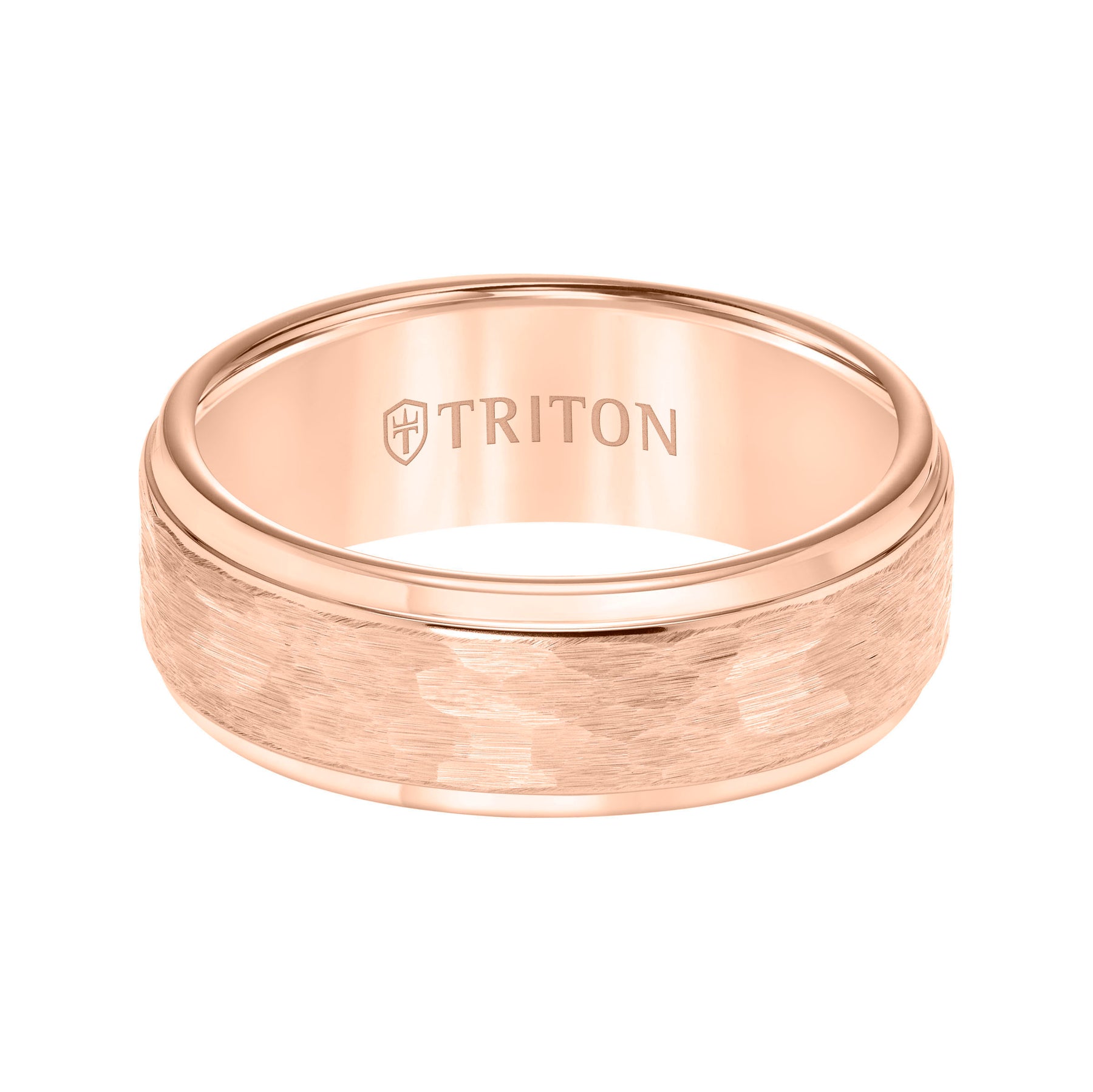 8mm Rose Tungsten carbide Step Edge Comfort Fit band with center hammered texture