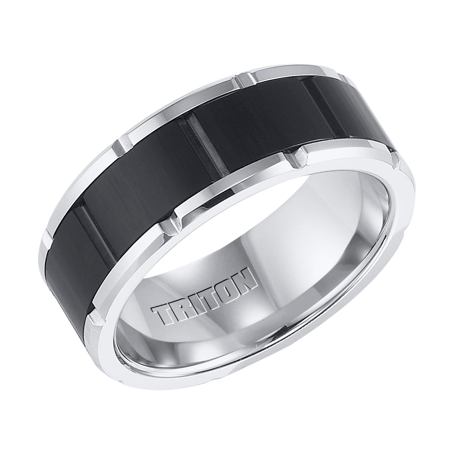 Black and White Tungsten Carbide Comfort Fit Band with Brick Engraving