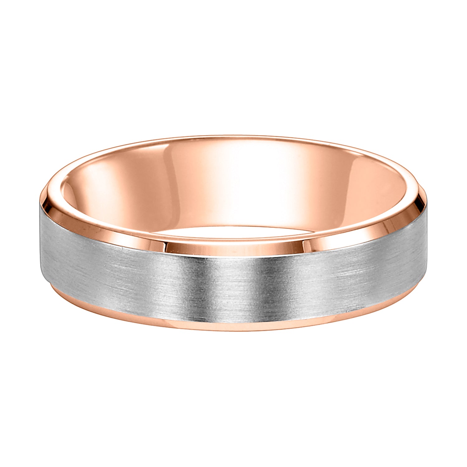 This crisp yet timeless, Comfort Fit wedding features a brushed finish with beveled edge