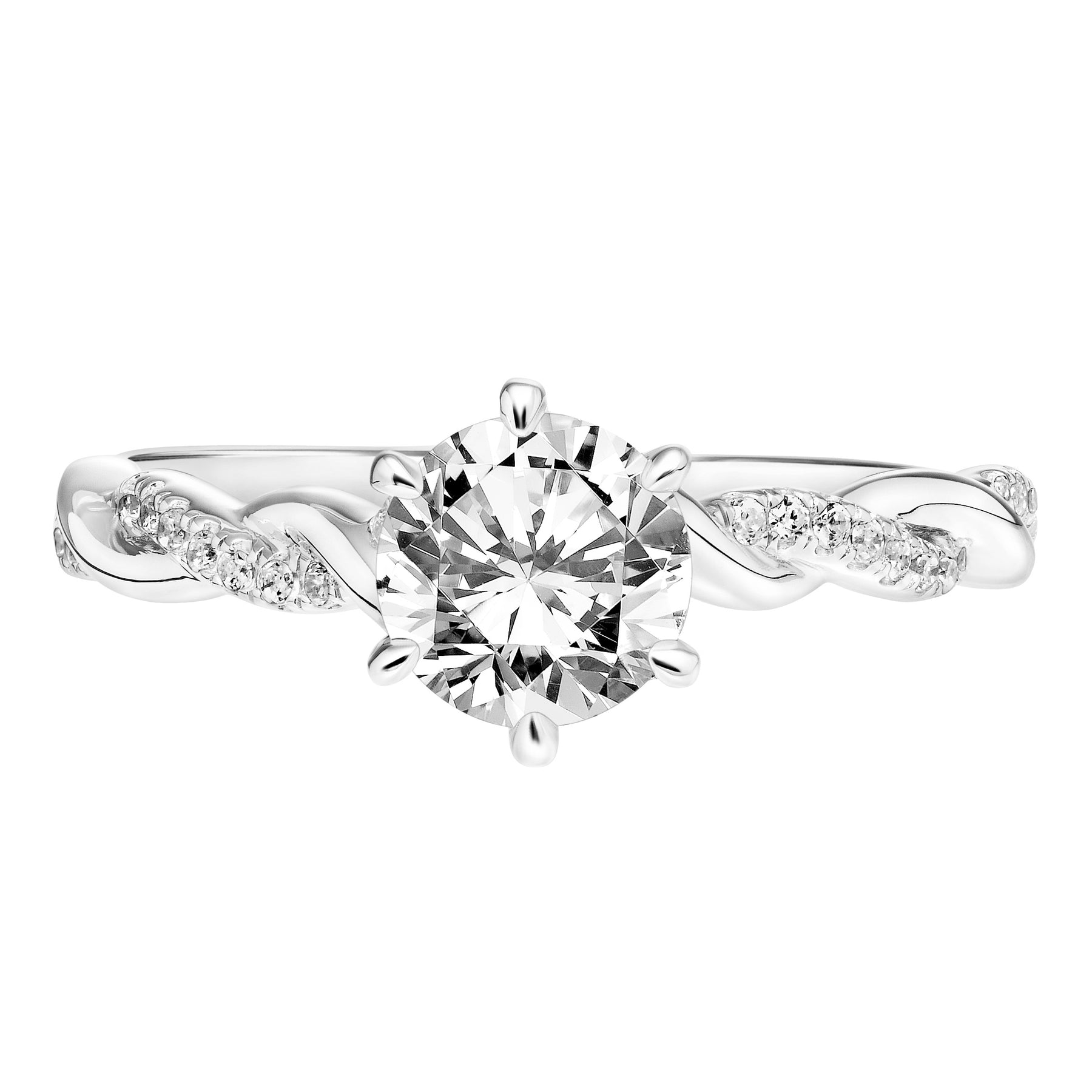 Six Prong Diamond Engagement Ring with Half Diamond Half Polished Twisted Shank