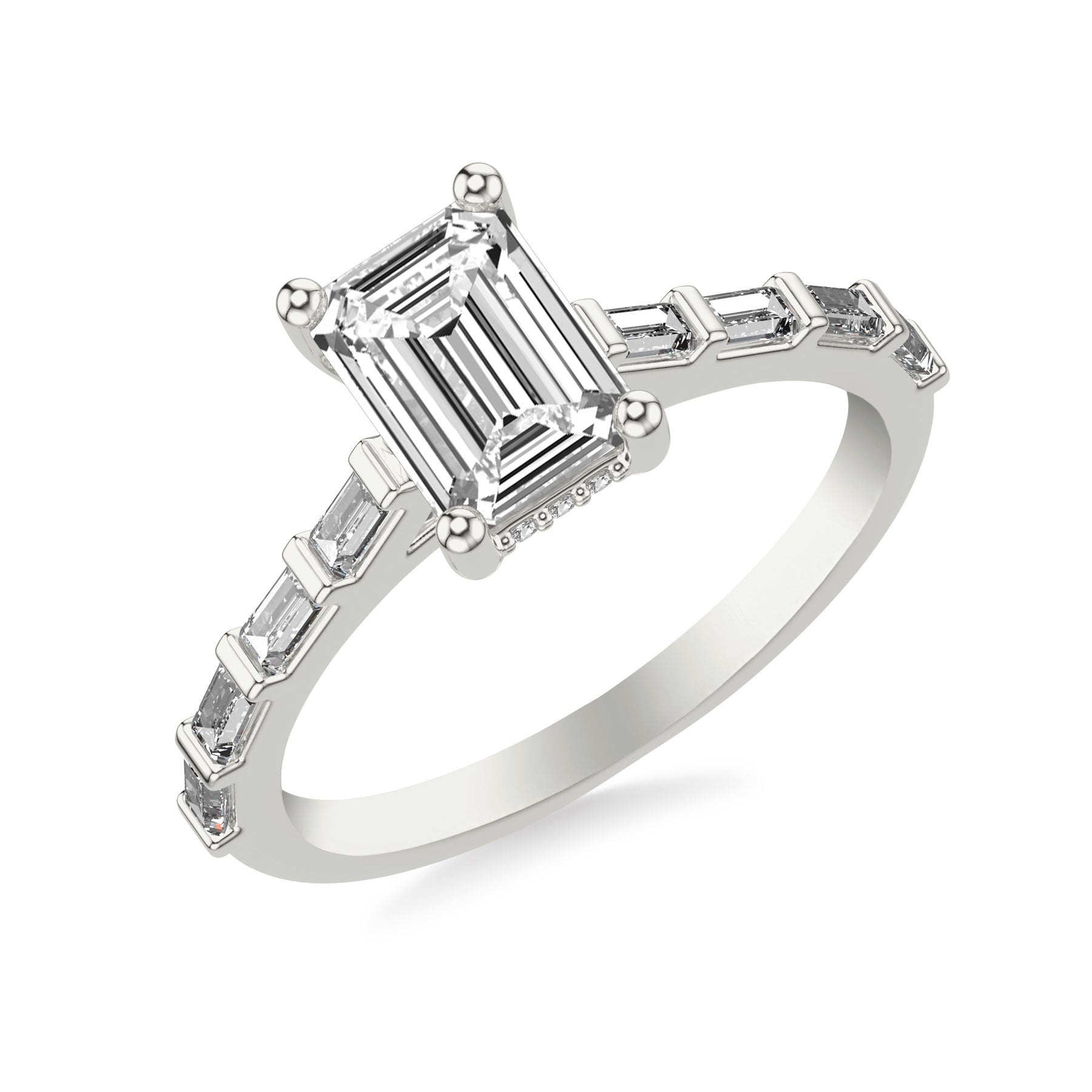 Contemporary Engagement Ring with Baguette Diamond Shank