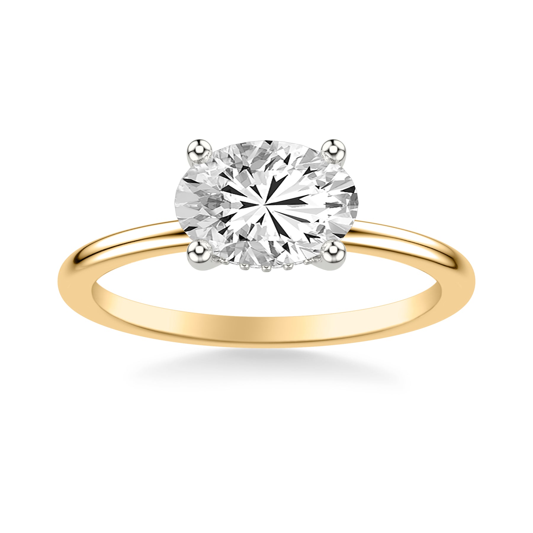 Classic East West Solitaire Engagment Ring and Hidden Diamond Halo with Polished Shank