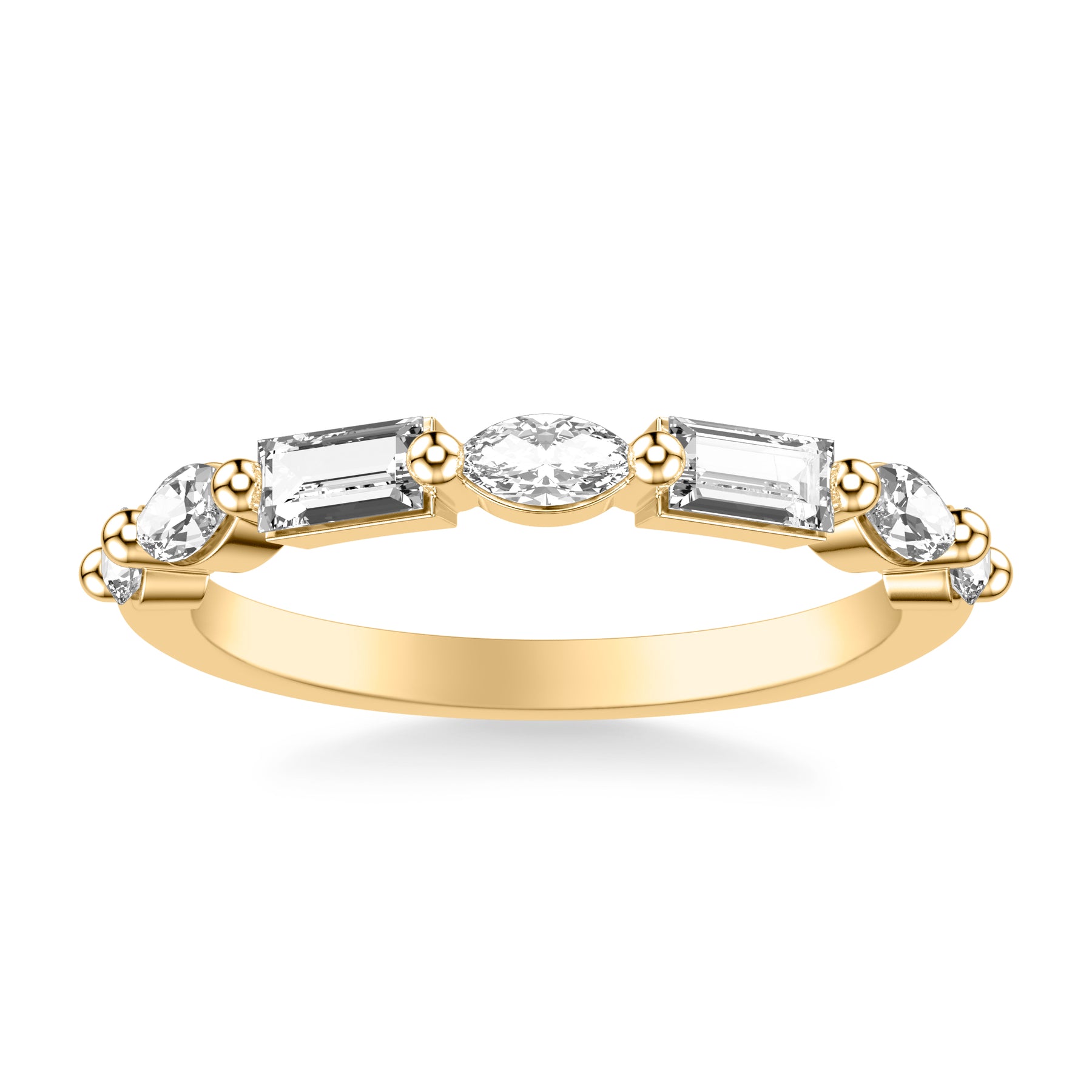 Contemporary Wedding Band with Mixed Fancy Baguette and Marquise and Round Diamonds