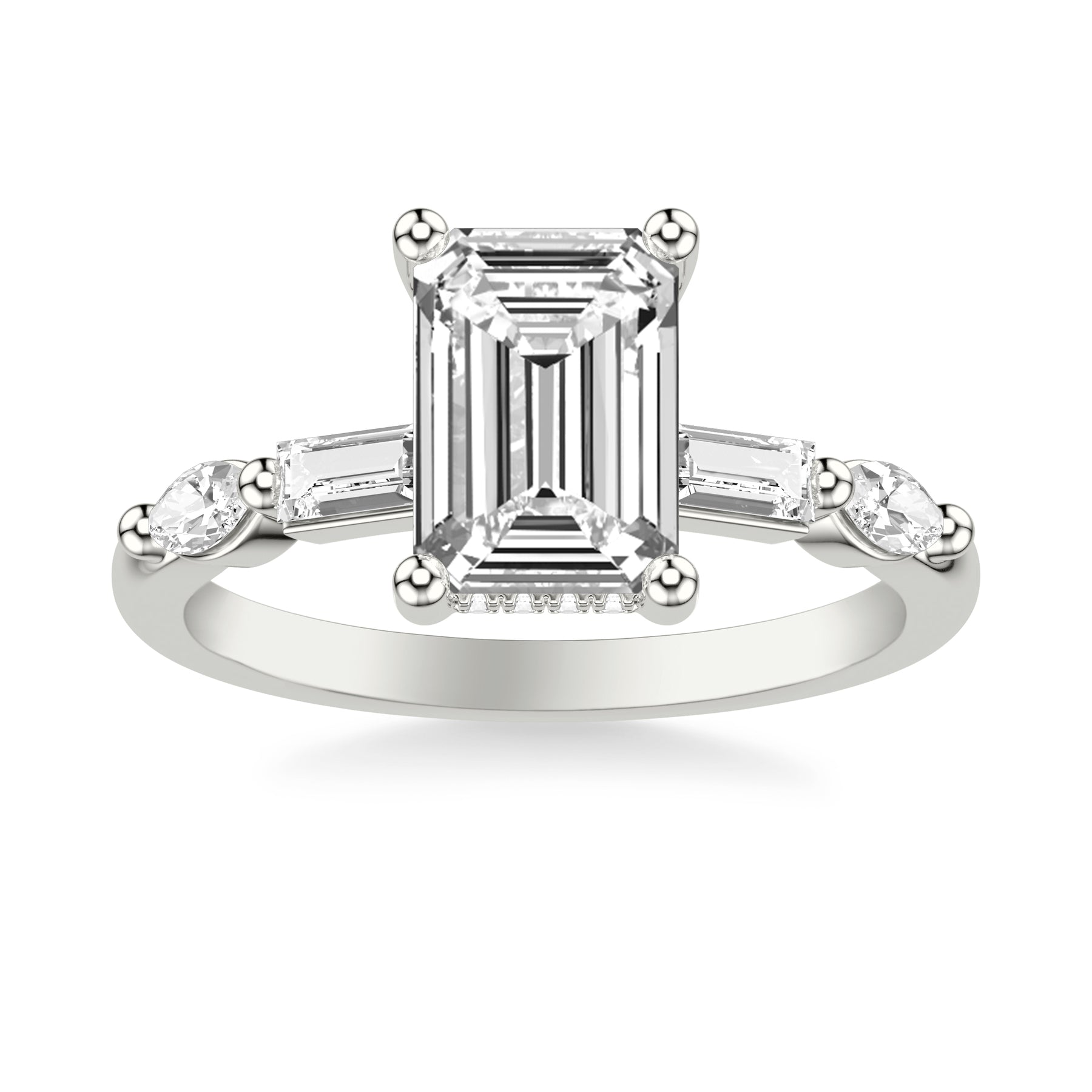 Contemporary Engagement Ring with Hidden Diamond Halo and Mixed Fancy Baguette and Marquise Diamond Shank